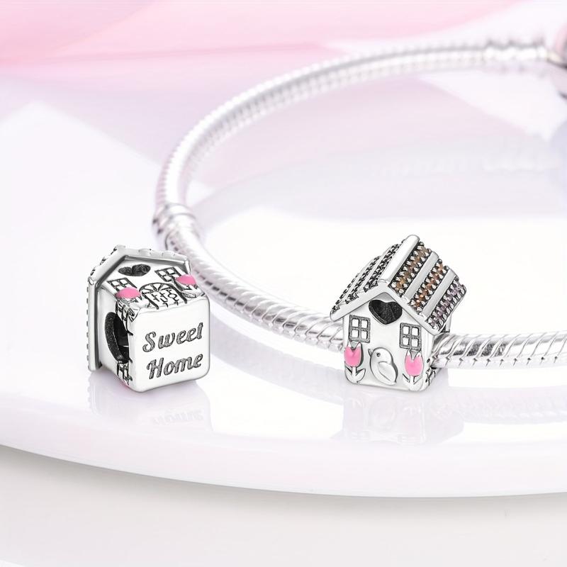 This handcrafted 925 silver house pendant is a stylish and hypoallergenic jewelry gift for women. Weighing 2.6 grams, this pendant features intricate bead detailing.