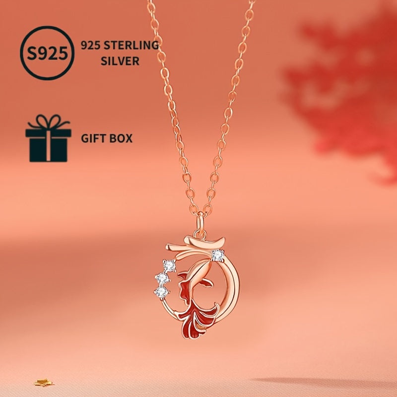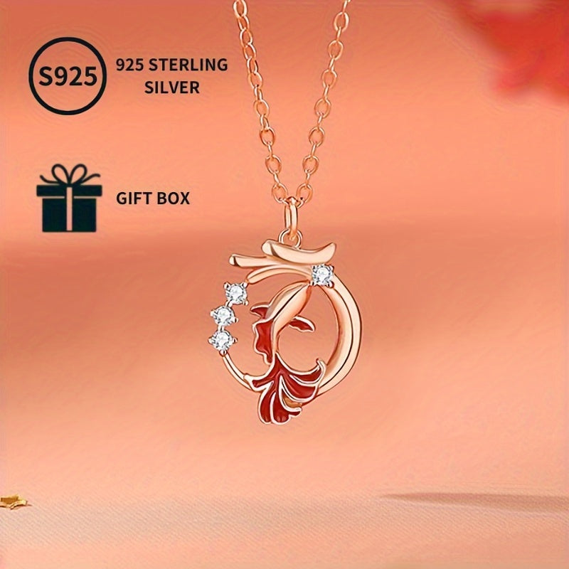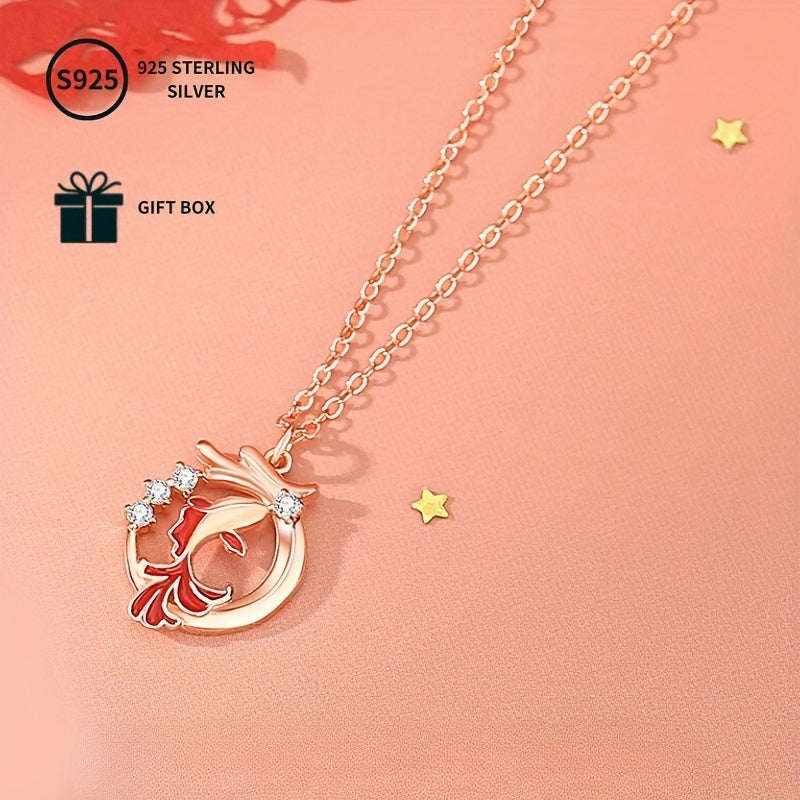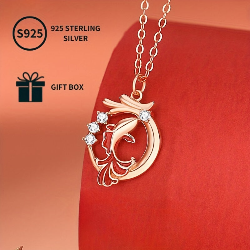 This elegant pendant necklace features a 925 silver Koi fish design with rose gold plating and sparkling CZ stones. Perfect for the holiday season or as a special gift for a loved one.