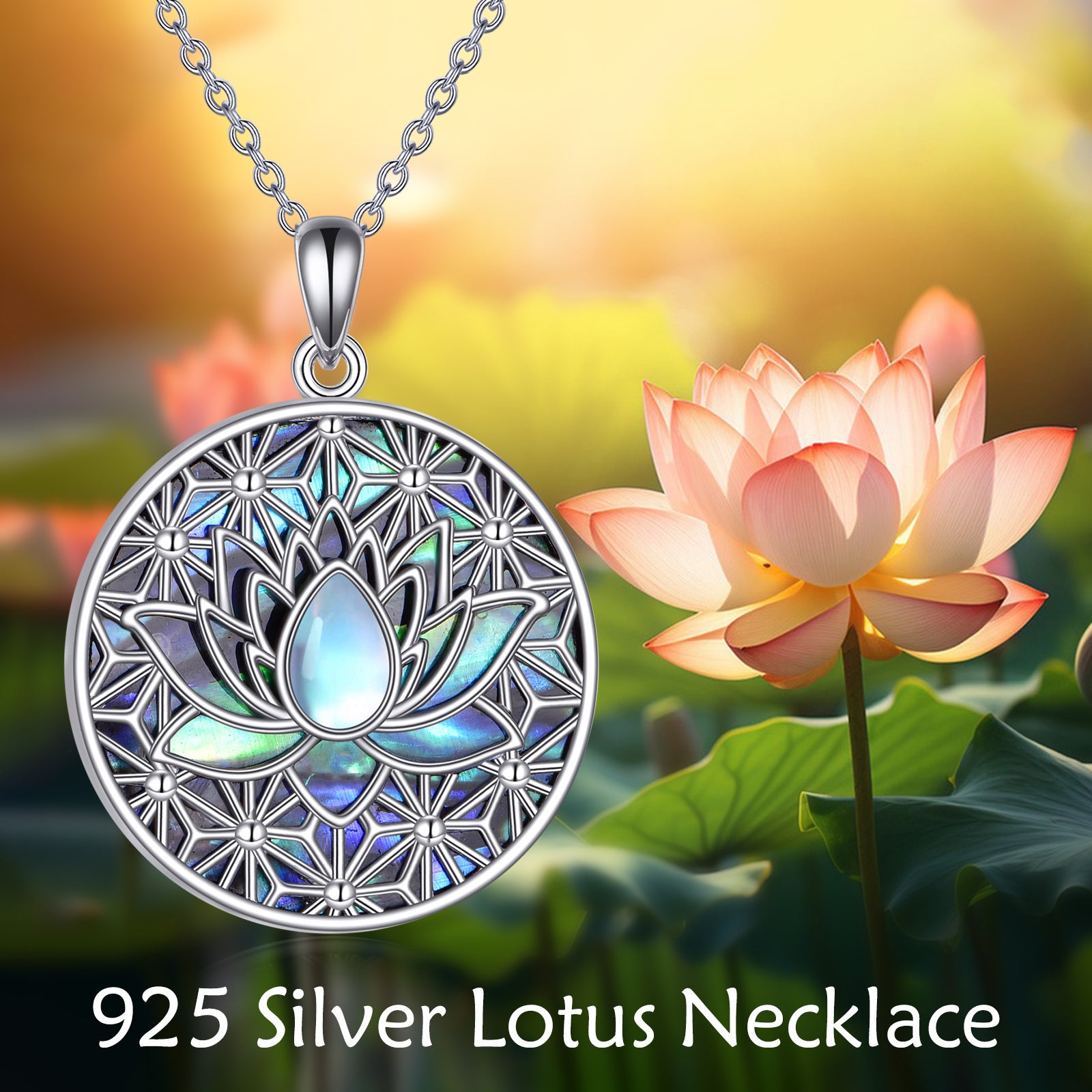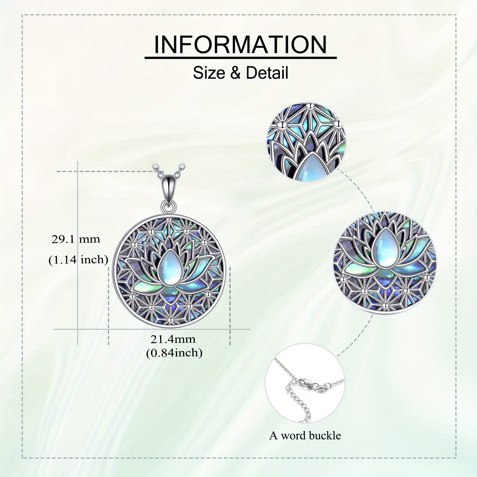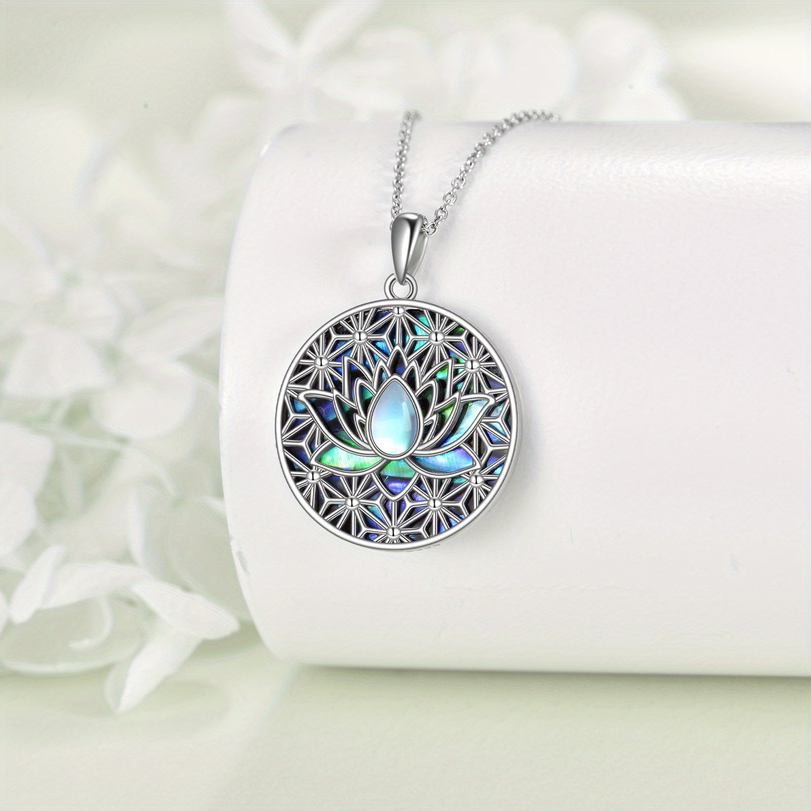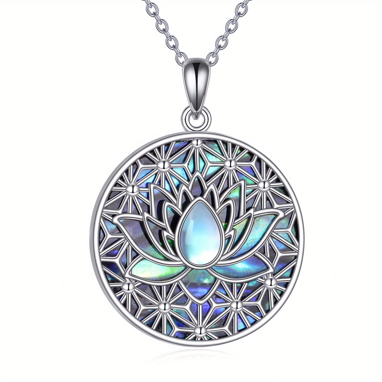 This stunning lotus necklace is crafted from 925 sterling silver with synthetic moonstone and abalone shell, making it a beautiful and unique piece of jewelry. Perfect gift for women who love lotus designs.