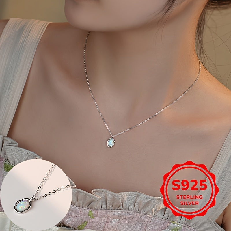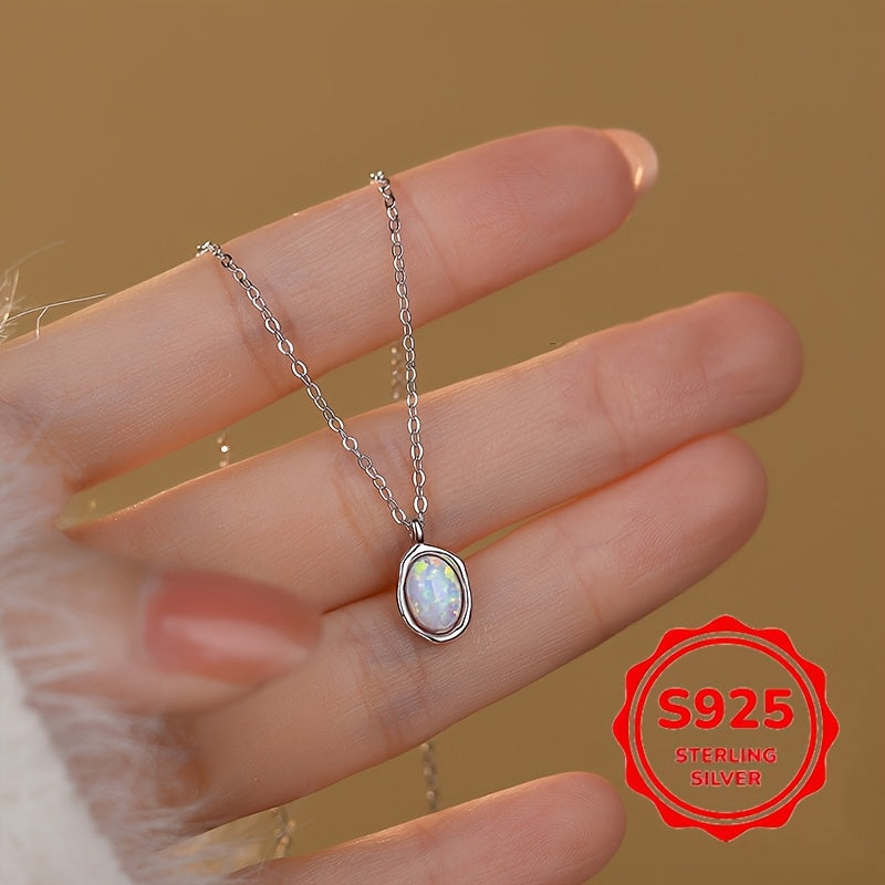 Stand out with this stunning 925 silver pendant featuring a synthetic opal mosaic design. Perfect for daily wear or as a thoughtful birthday gift.