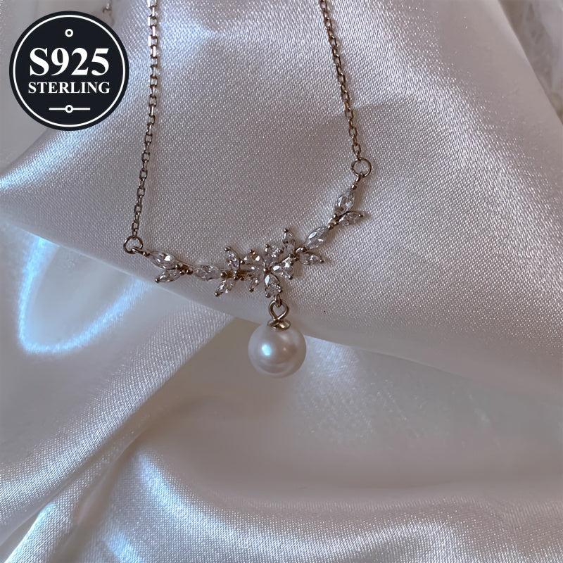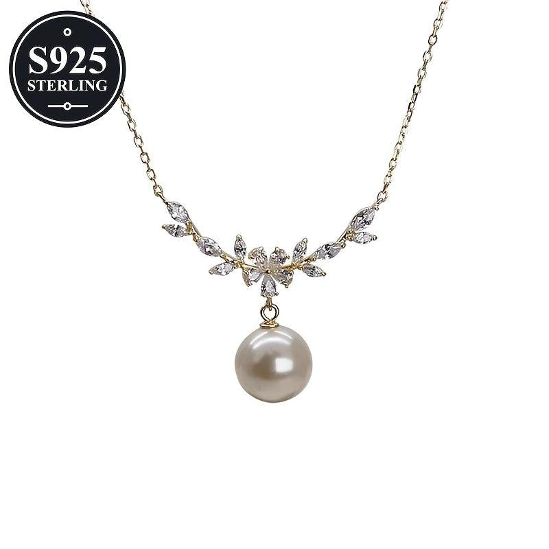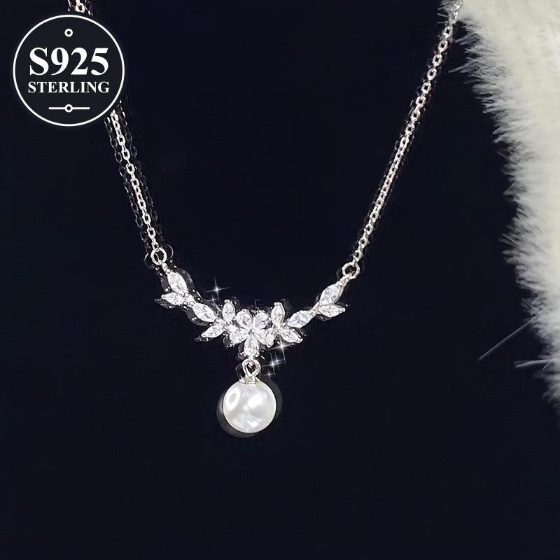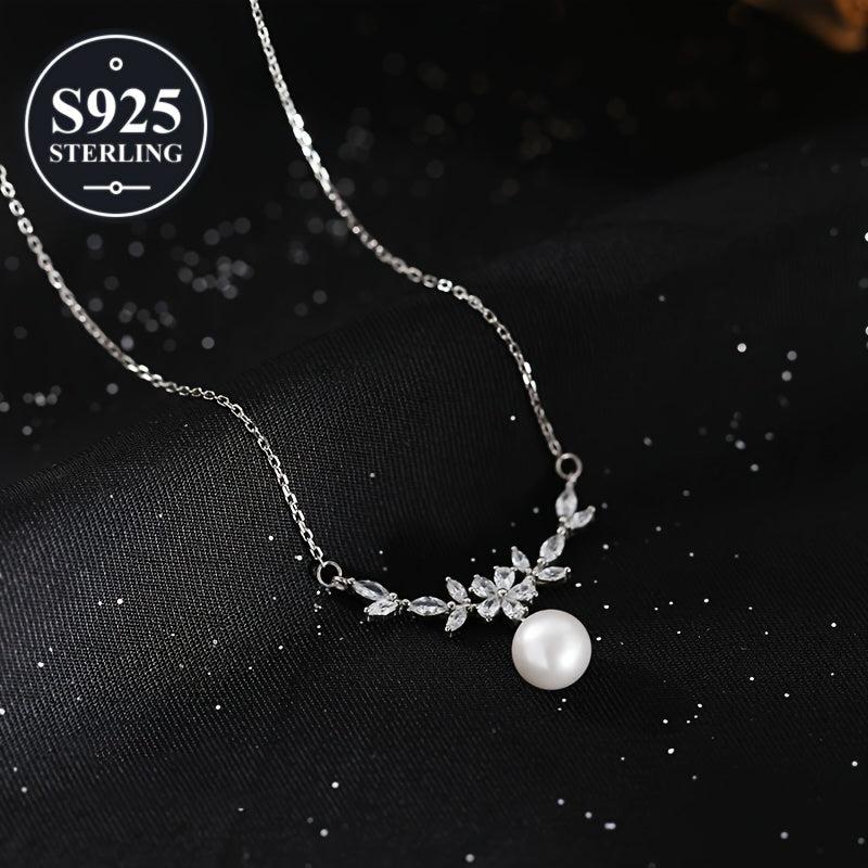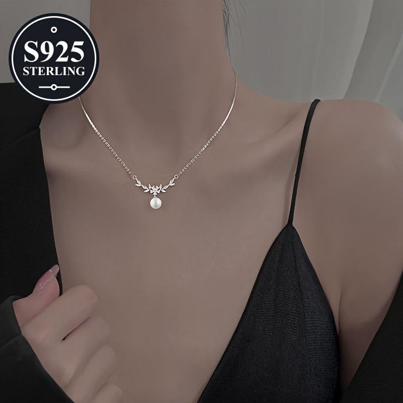 This elegant 925 sterling silver pearl pendant necklace is hypoallergenic and perfect for daily wear or parties. Comes with a storage box, making it an ideal gift for women.