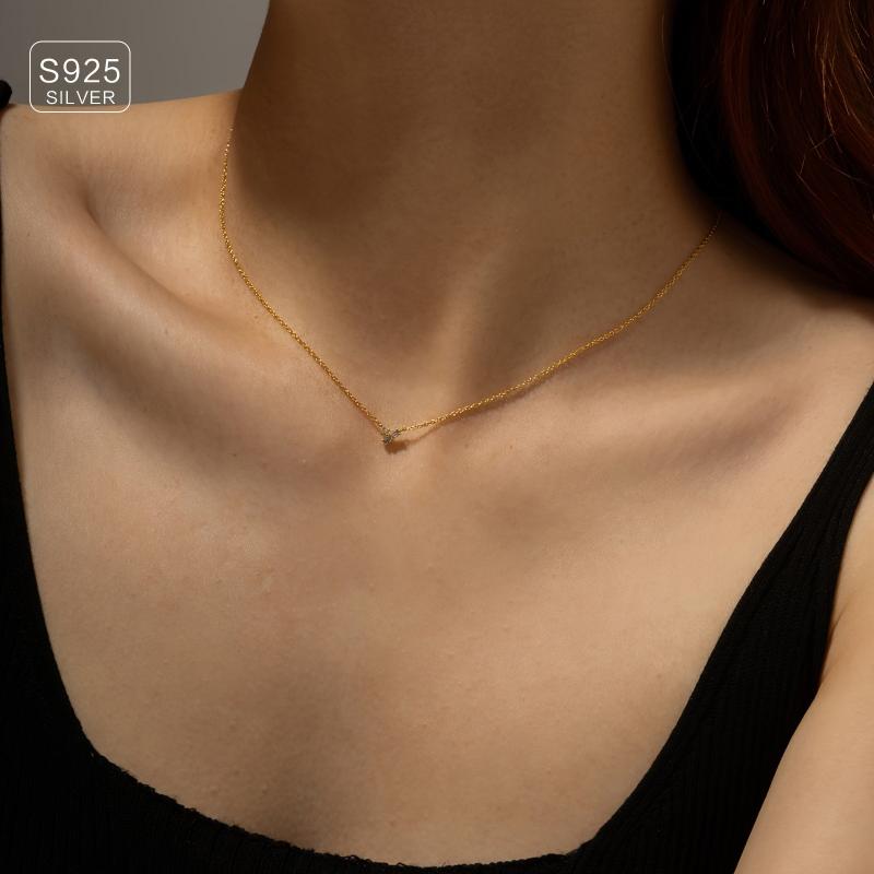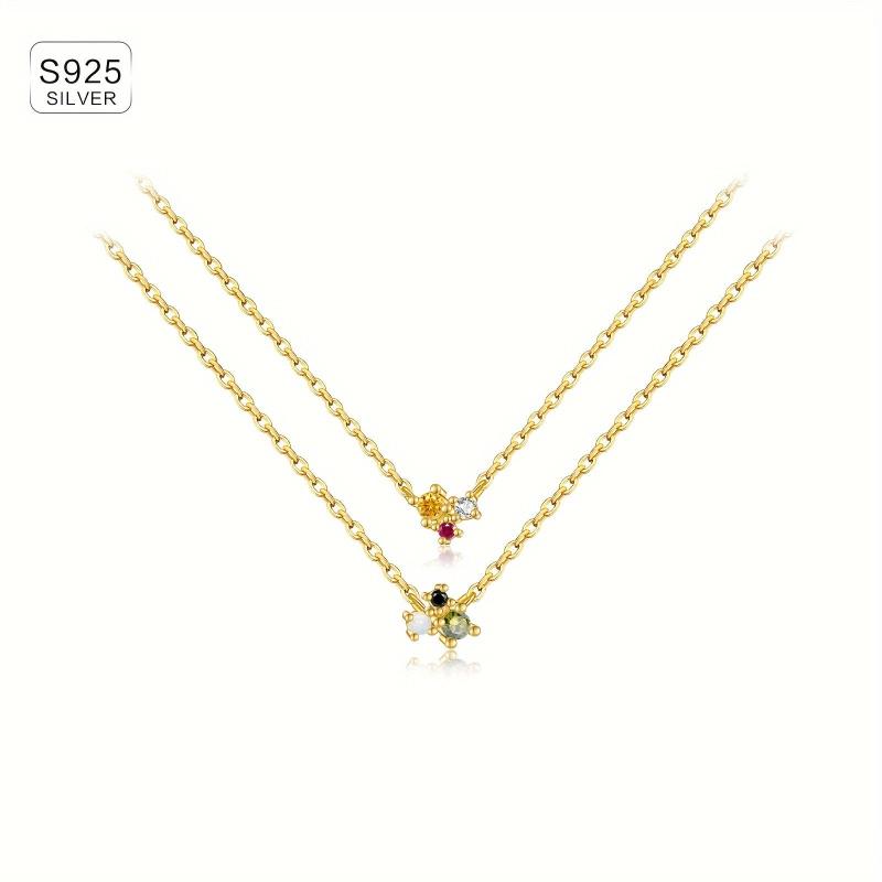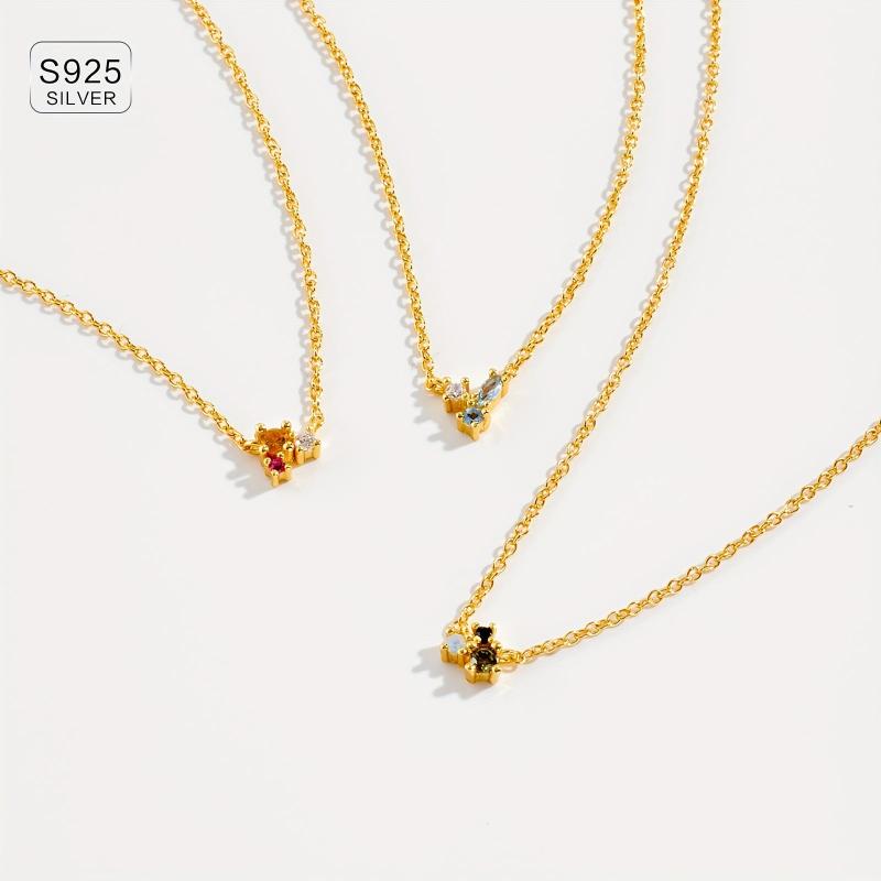 Elegant pendant necklace featuring synthetic cubic zirconia stones with a golden plated geometric design. Hypoallergenic and suitable for daily wear or parties.