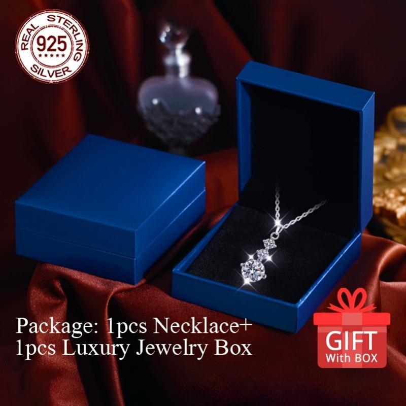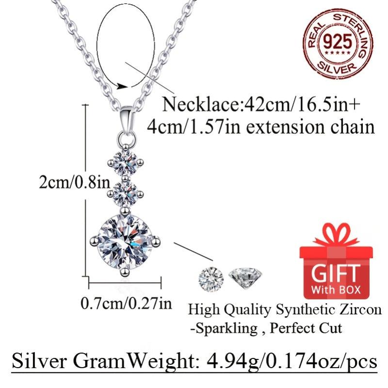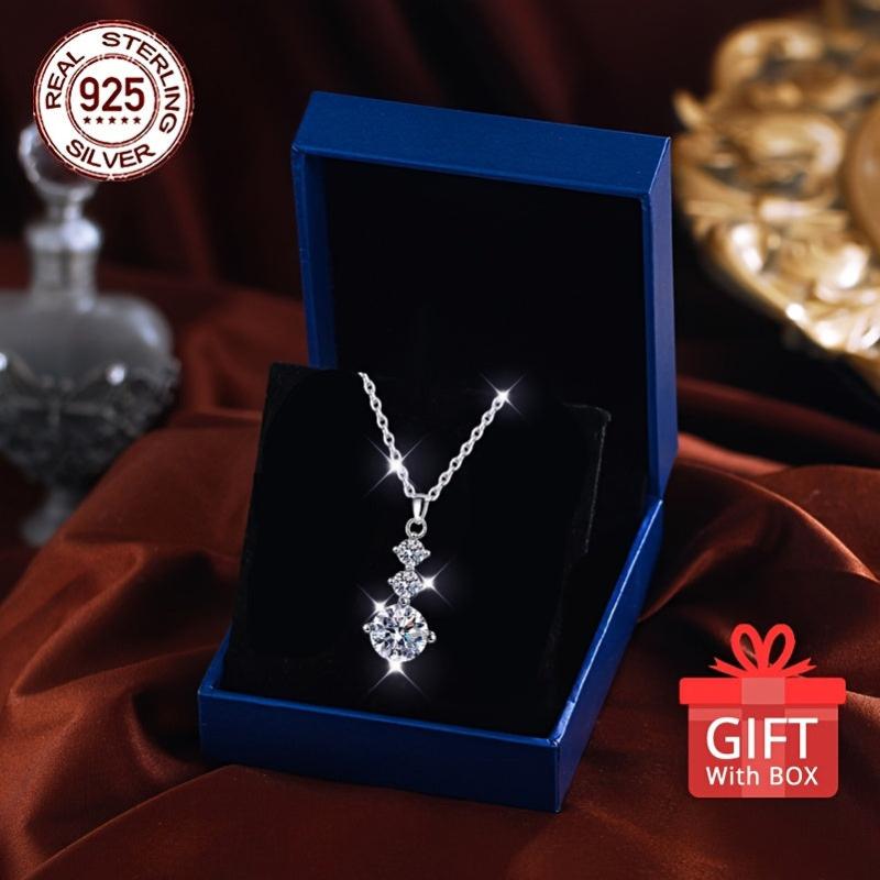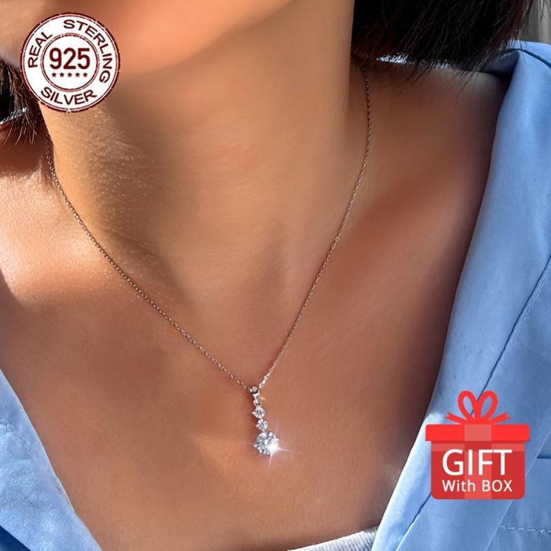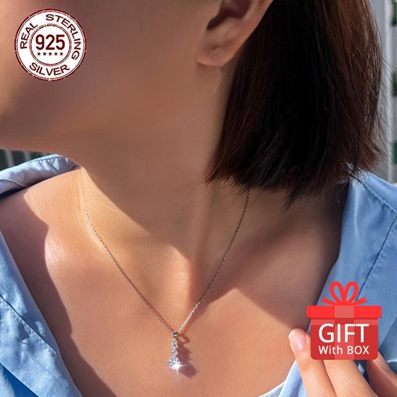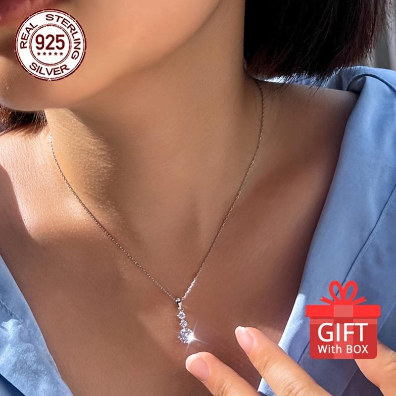 This elegant pendant necklace is crafted from high-quality 925 sterling silver and features a drop design embellished with three sparkling round synthetic zirconia stones. It weighs 4.94 grams (0.174 ounces) and adds a touch of sophistication to any outfit.