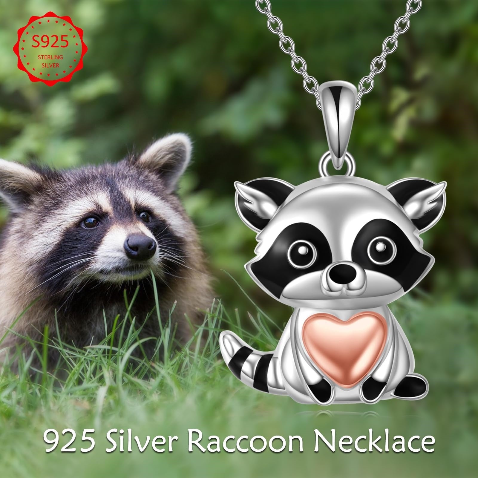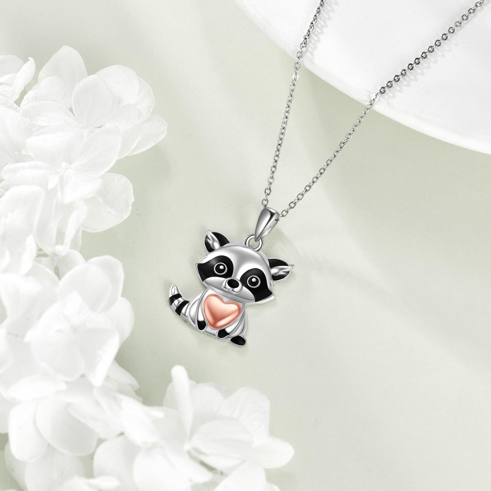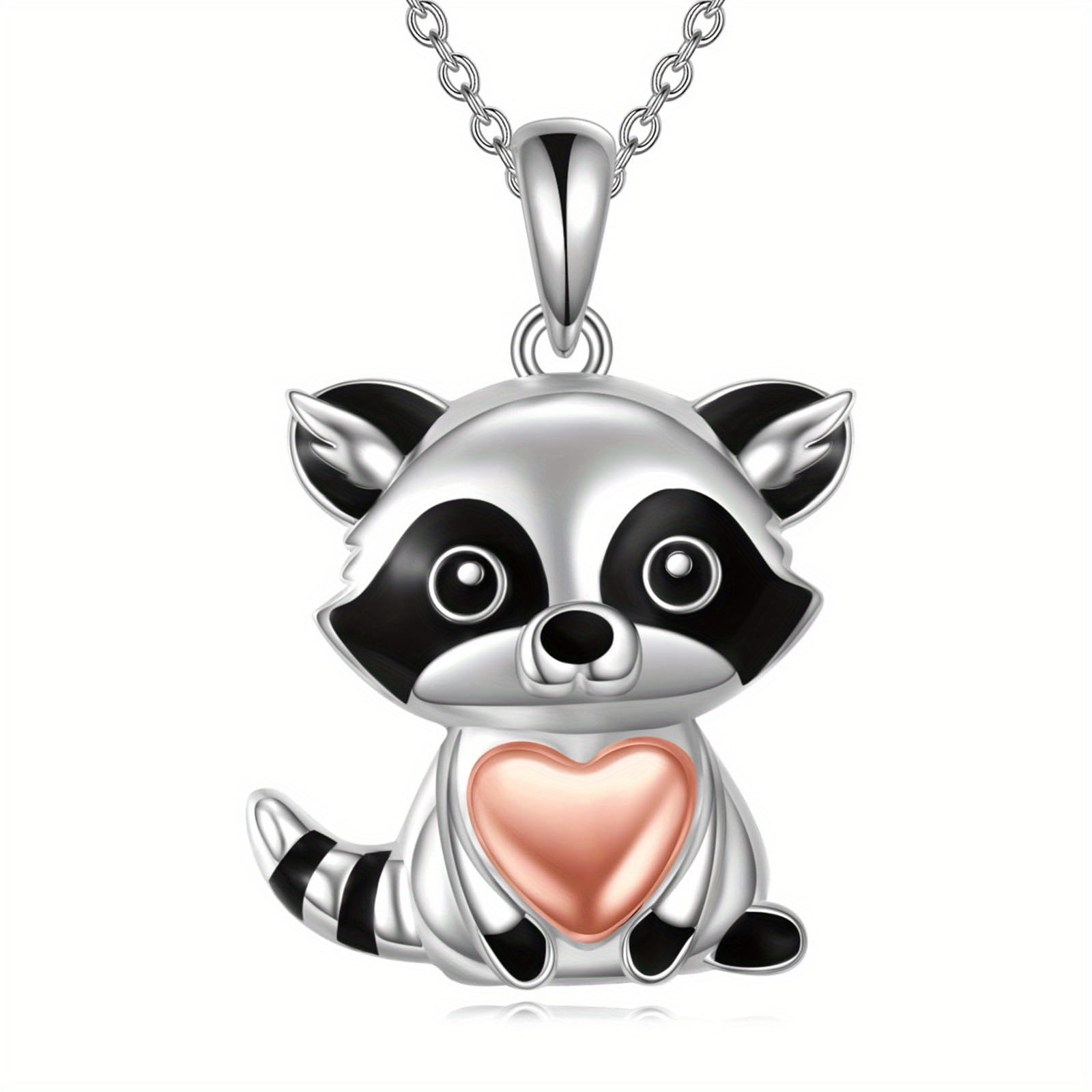Adorable sterling silver raccoon pendant necklace, perfect for raccoon lovers. Great gift idea!