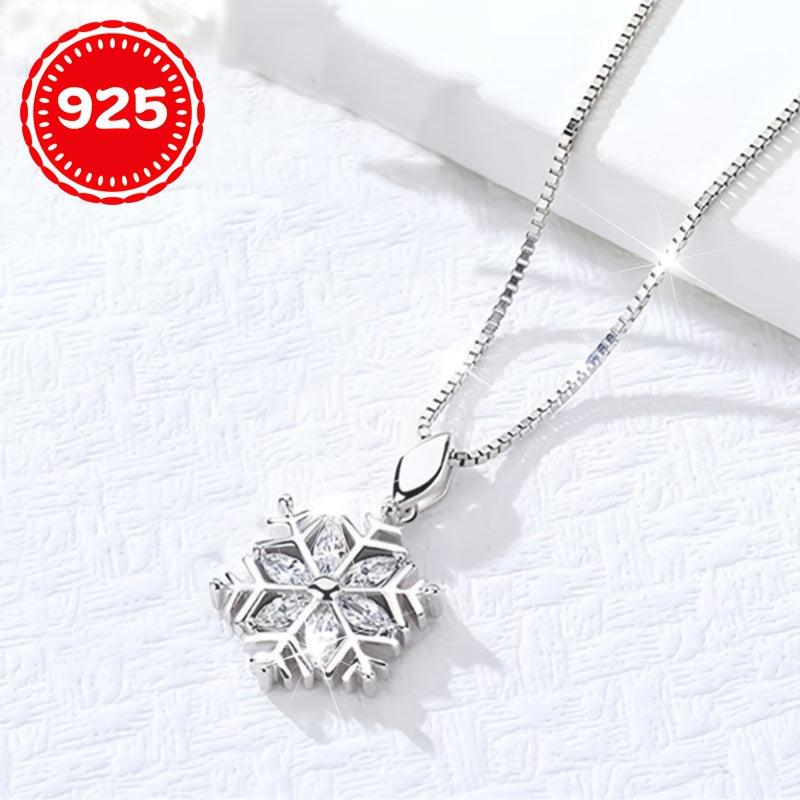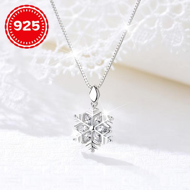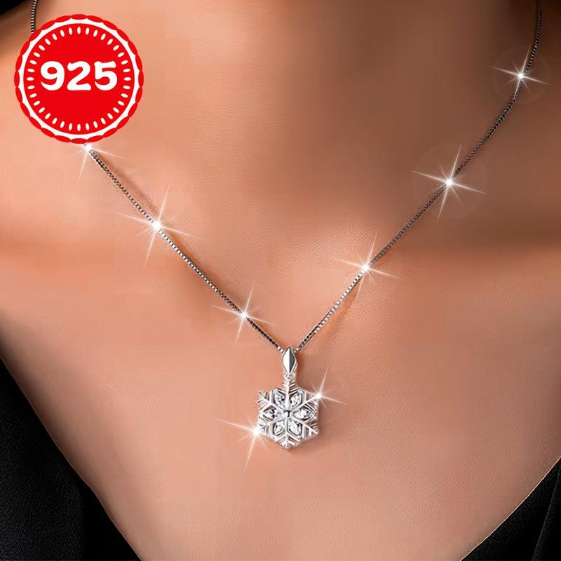 925 Silver Snowflake Collarbone Chain Necklace for Women