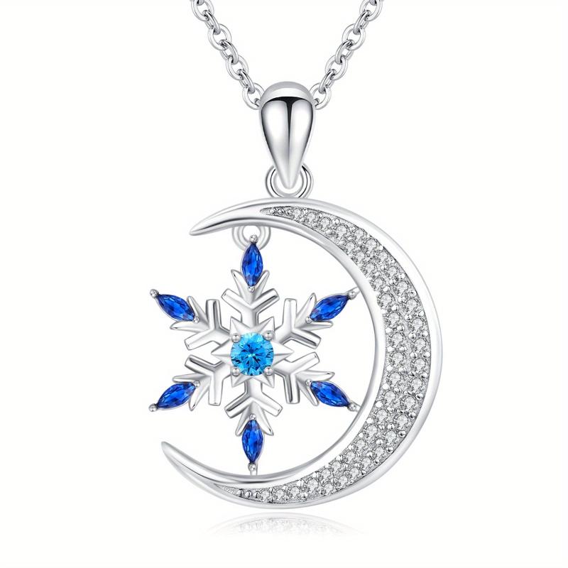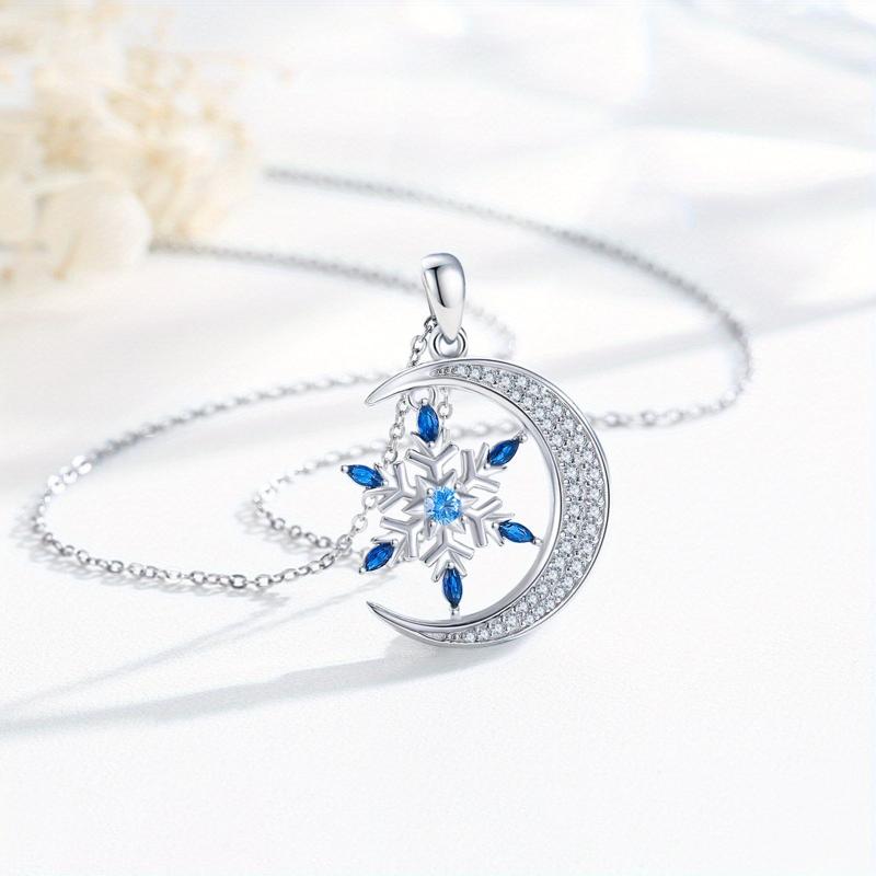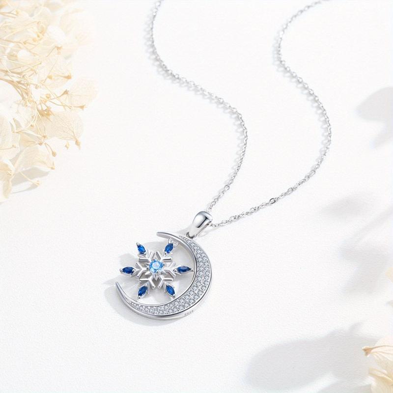 This stunning snowflake necklace is crafted from 925 sterling silver with a sparkling cubic zirconia moon design. Perfect as a Christmas gift or winter accessory.