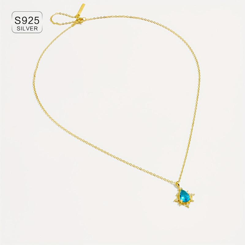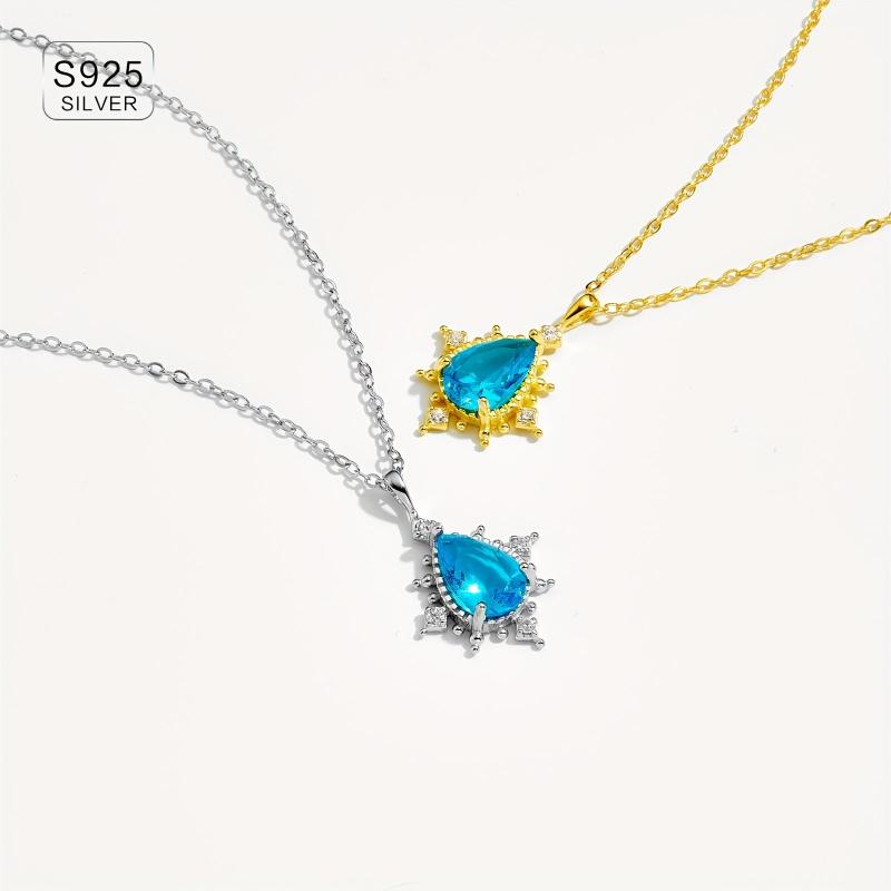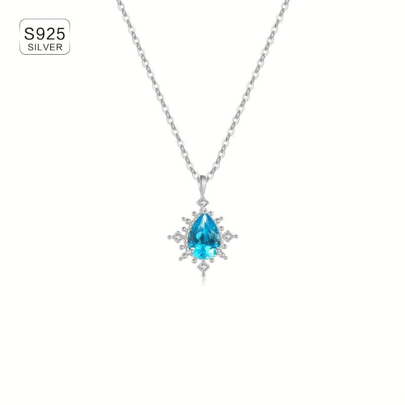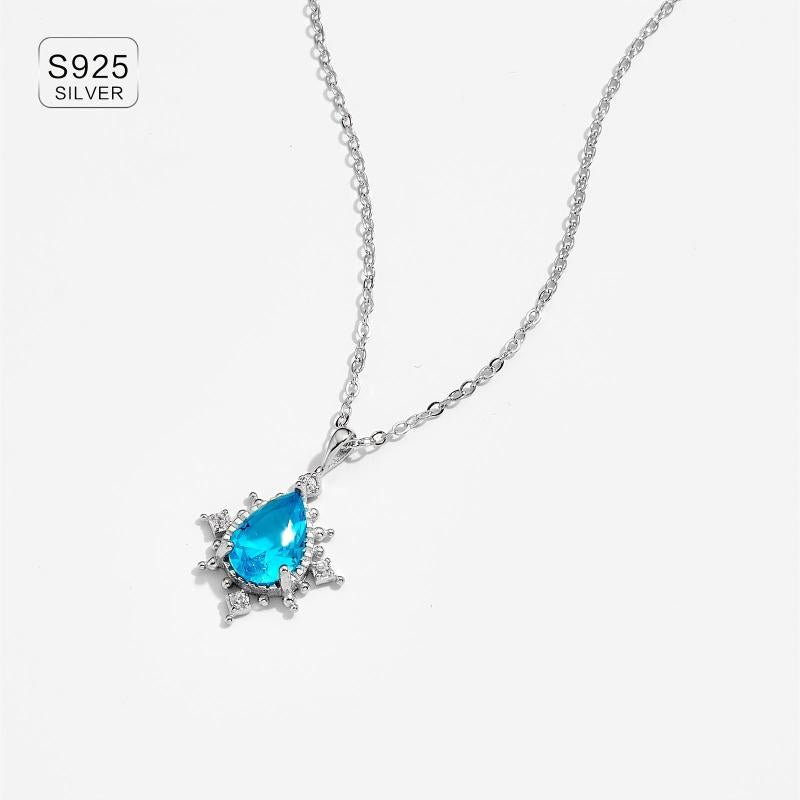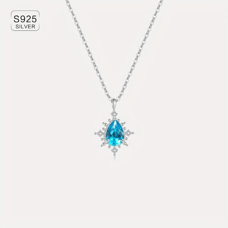 Elegant snowflake and teardrop zirconia necklace made of 925 sterling silver with sparkling rhinestones. Perfect accessory for winter holidays and daily wear.