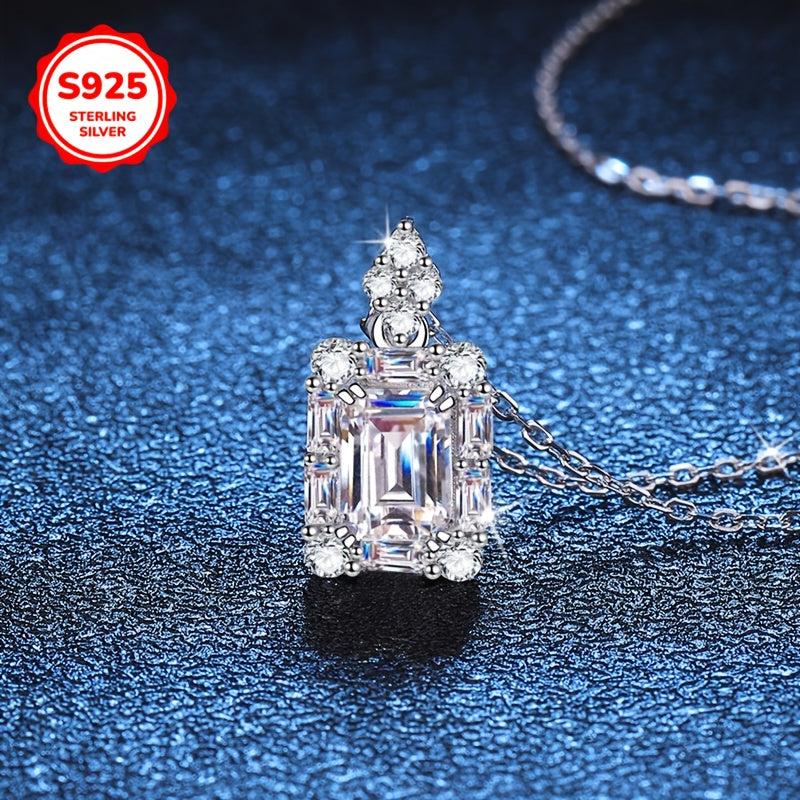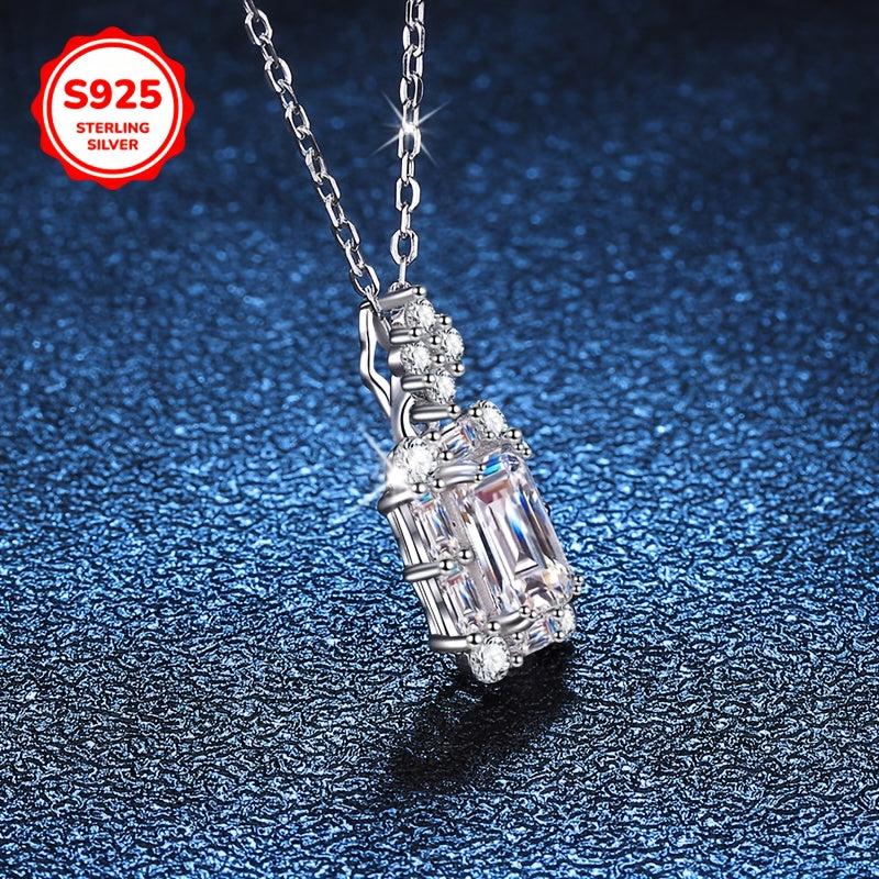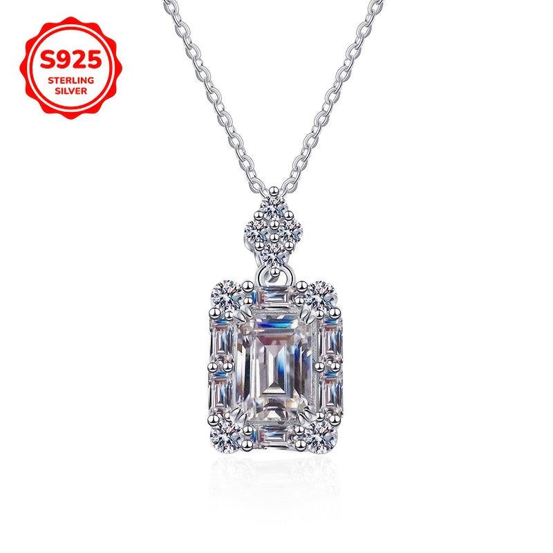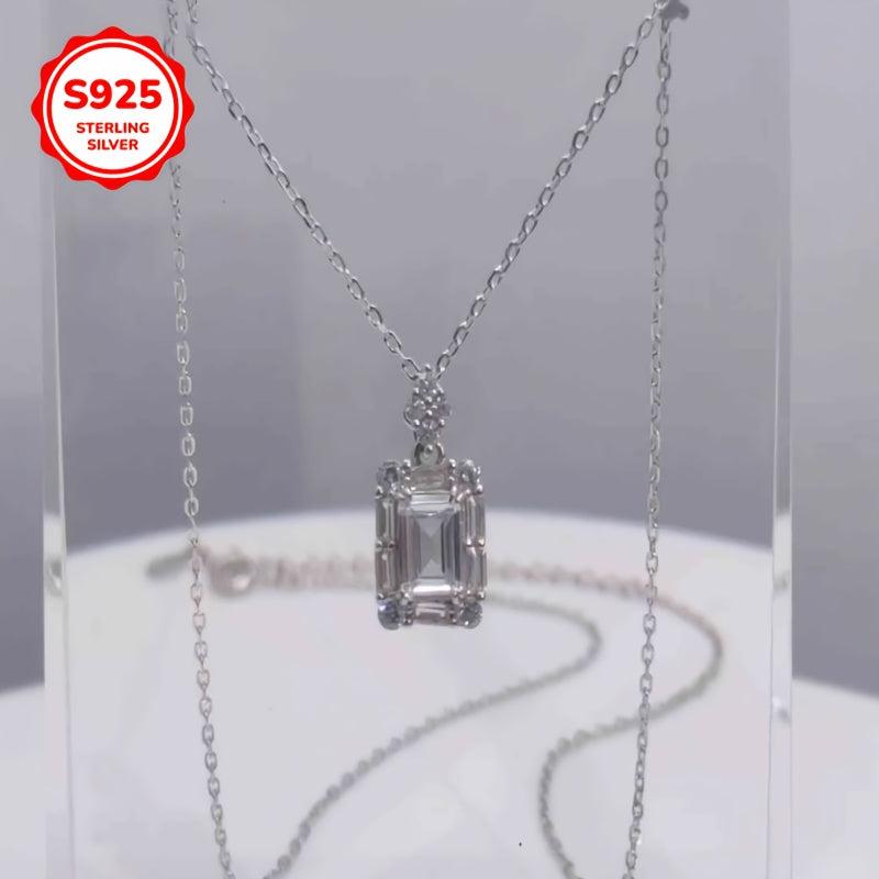 925 Silver Square Sugar Pendant Necklace with Zirconia Inlay