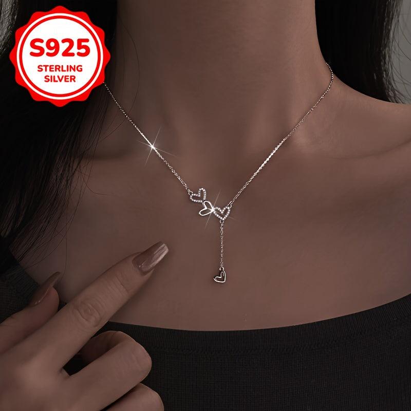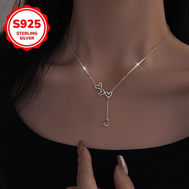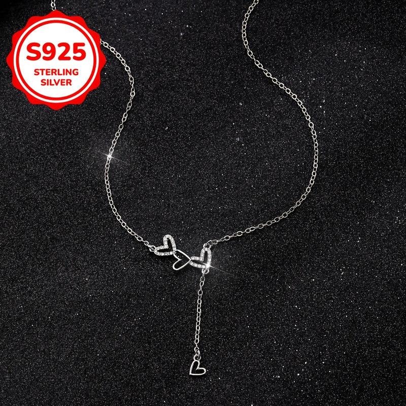 This stylish heart to heart necklace features a unique tassel design. Made of 925 silver, it is lightweight and versatile, suitable for all occasions.