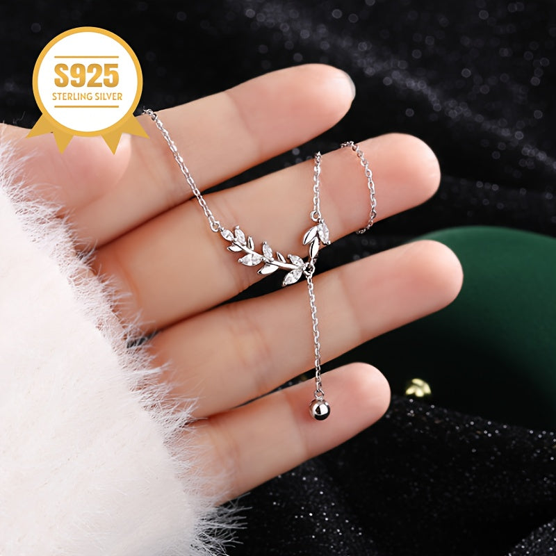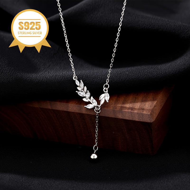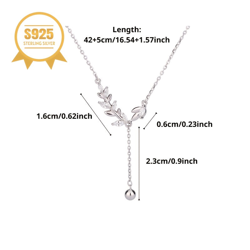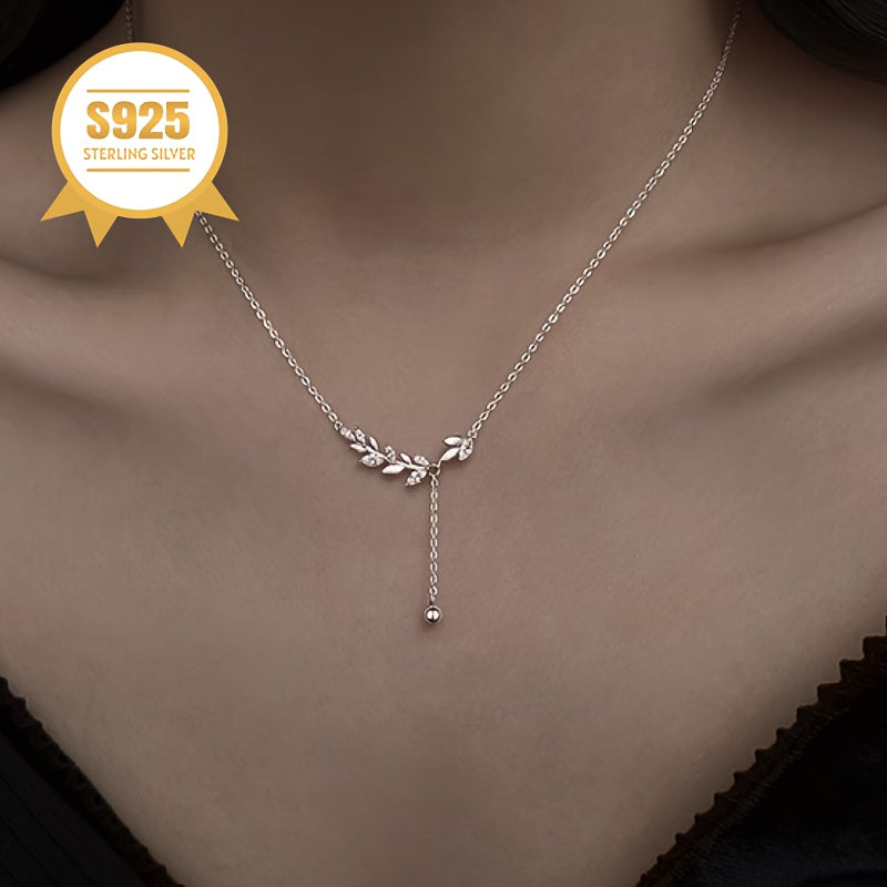 Elegant and hypoallergenic clavicle necklace featuring a wheat sheaf pendant with CZ stones. Crafted from genuine 925 sterling silver.