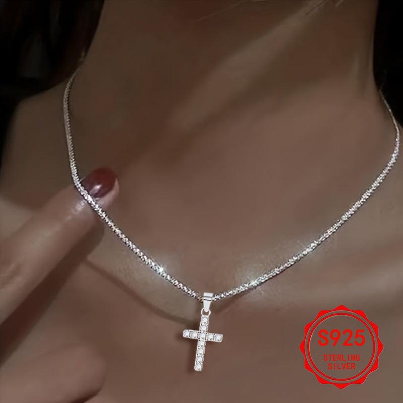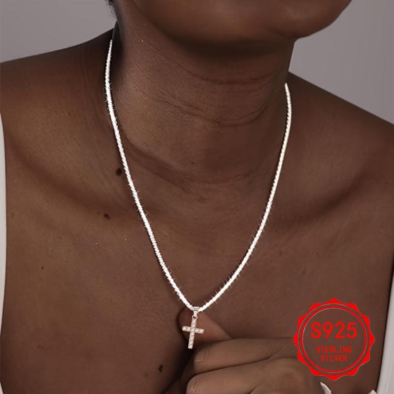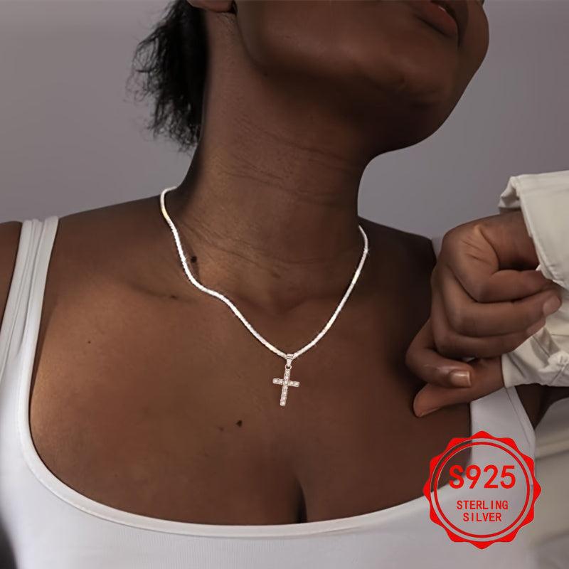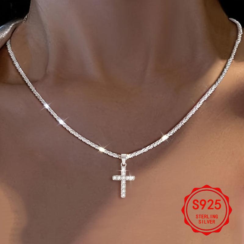 This 925 silver necklace features a cross pendant, making it suitable for daily wear and parties. It is anti-allergic and perfect for gifting on Valentine's Day. Ideal for men and women.