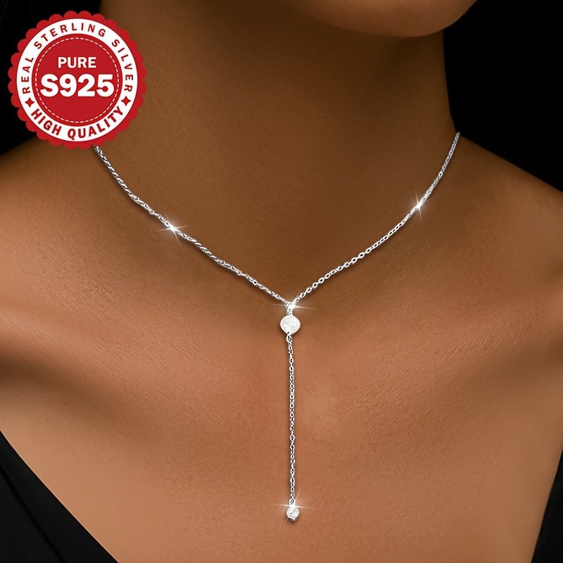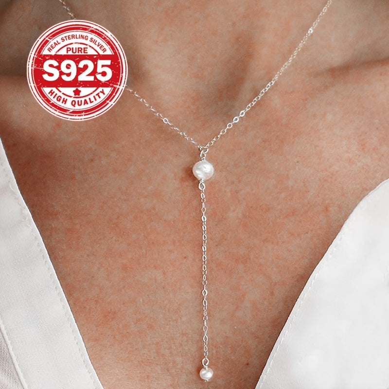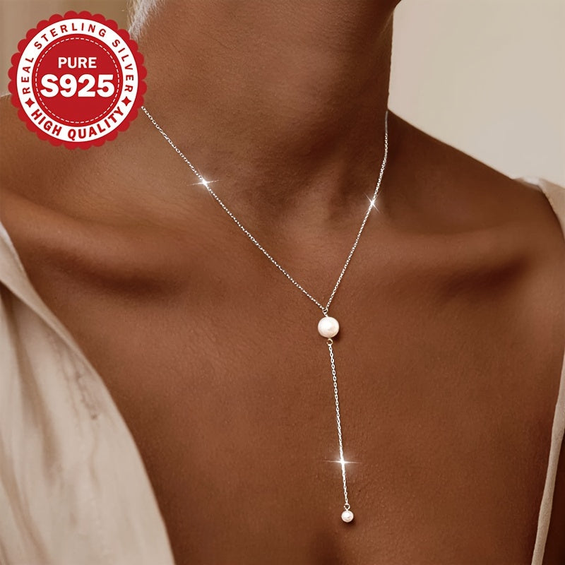 Elegant and versatile Y necklace featuring a 925 sterling silver chain with an 18K gold plated mother bead. Perfect for daily wear or special occasions, this piece makes a great gift for women.