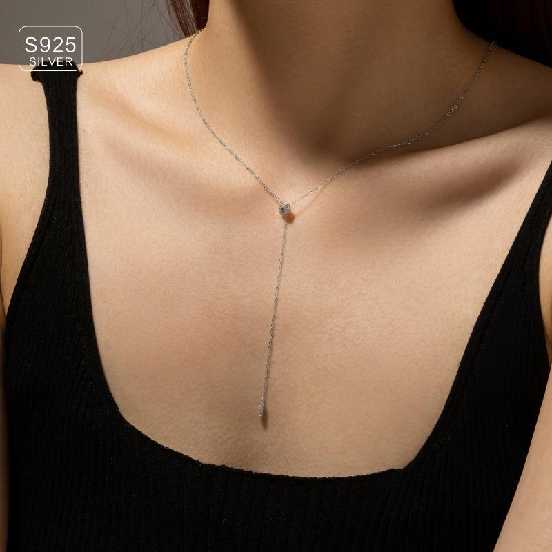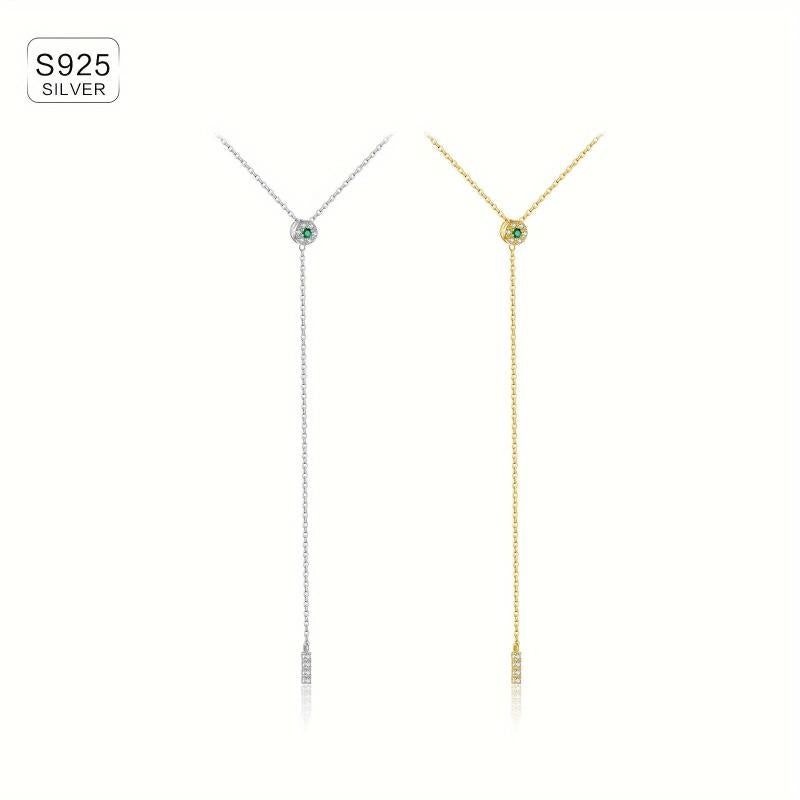 Elegant 925 sterling silver Y shape necklace set featuring sparkling synthetic zirconia. Perfect for women's party and special occasion wear.