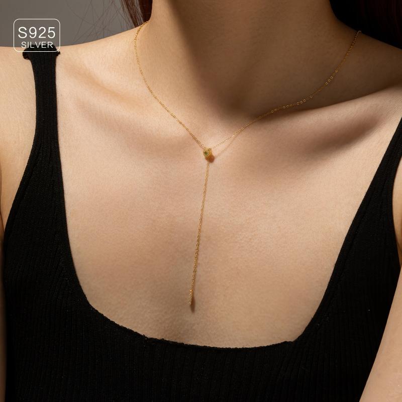 925 Silver Y Necklce Set with Zirconia for Women Party Wear