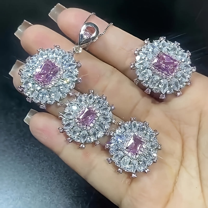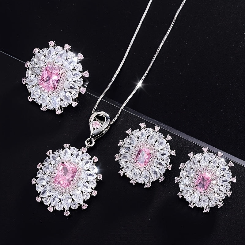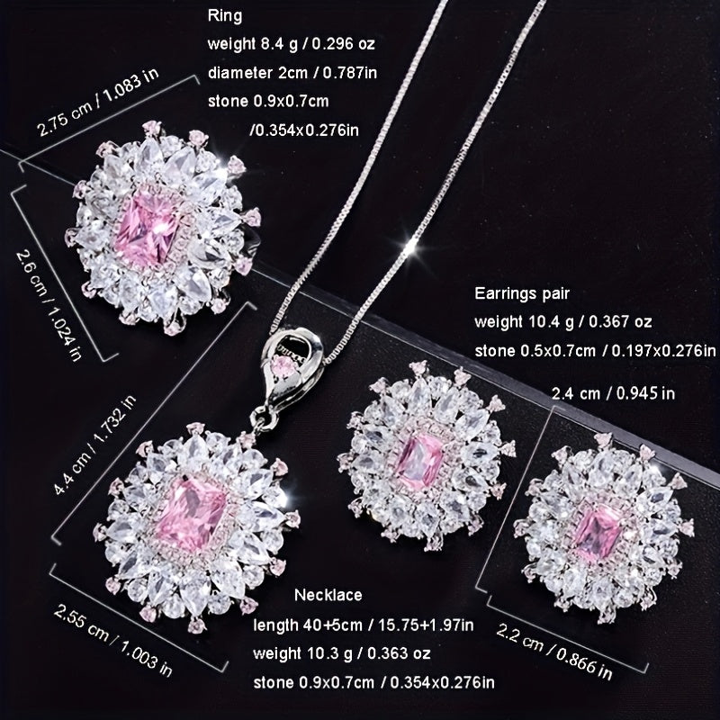 This stunning jewelry set includes a pair of auricular needle earrings, a necklace pendant, and an adjustable ring, all made of 925 sterling silver and featuring synthetic zirconia insets. The perfect gift for Mother's Day or any special occasion.