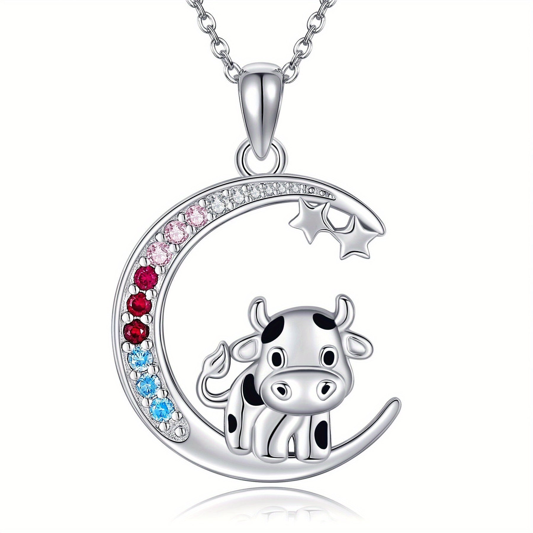This elegant cow pendant necklace is made of 925 sterling silver, a perfect gift for cow lovers.