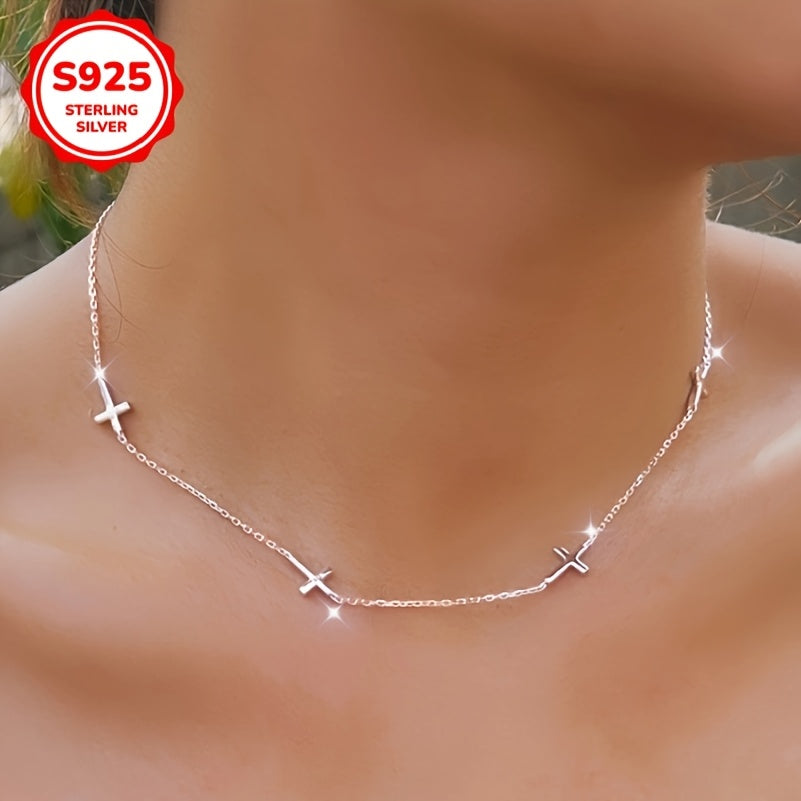 This minimalist and hypoallergenic necklace features a glossy cross charm on a delicate clavicle chain. Perfect for adding a touch of religious elegance to your look.