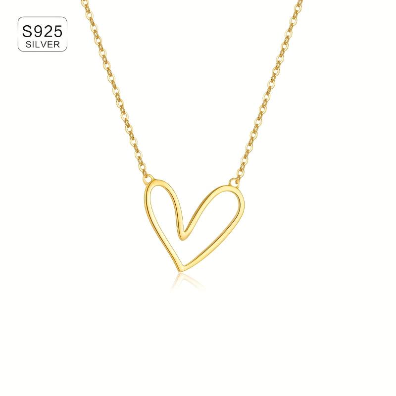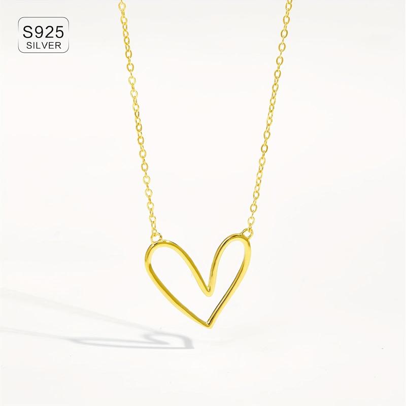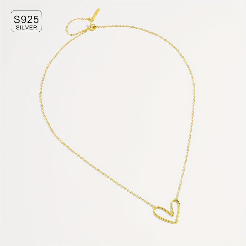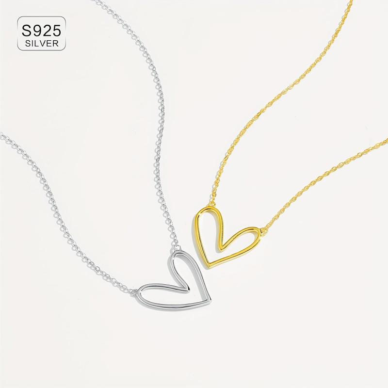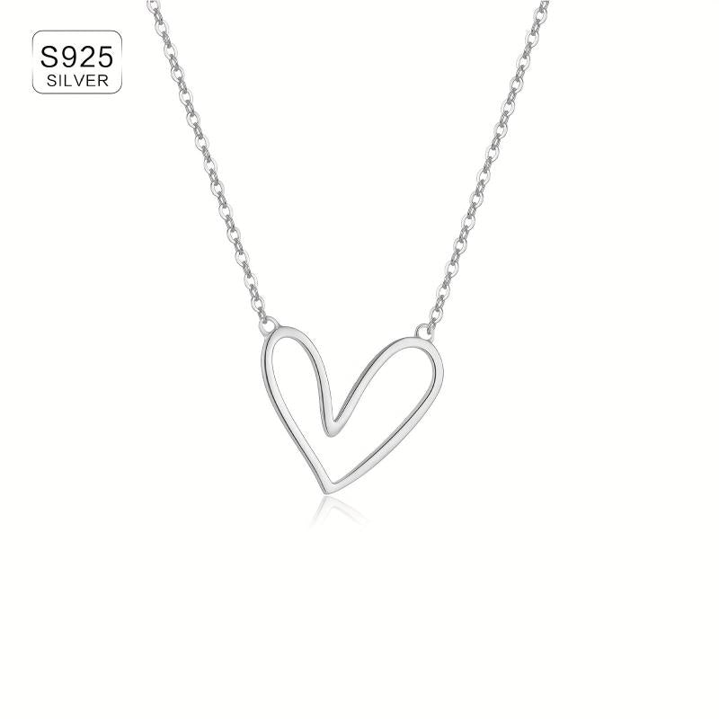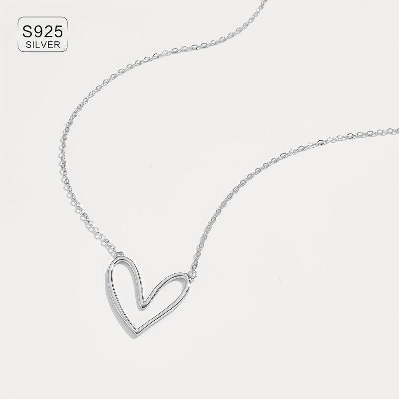 925 Sterling Silver Heart Line Pendant Necklace Romantic Minimalist Jewelry