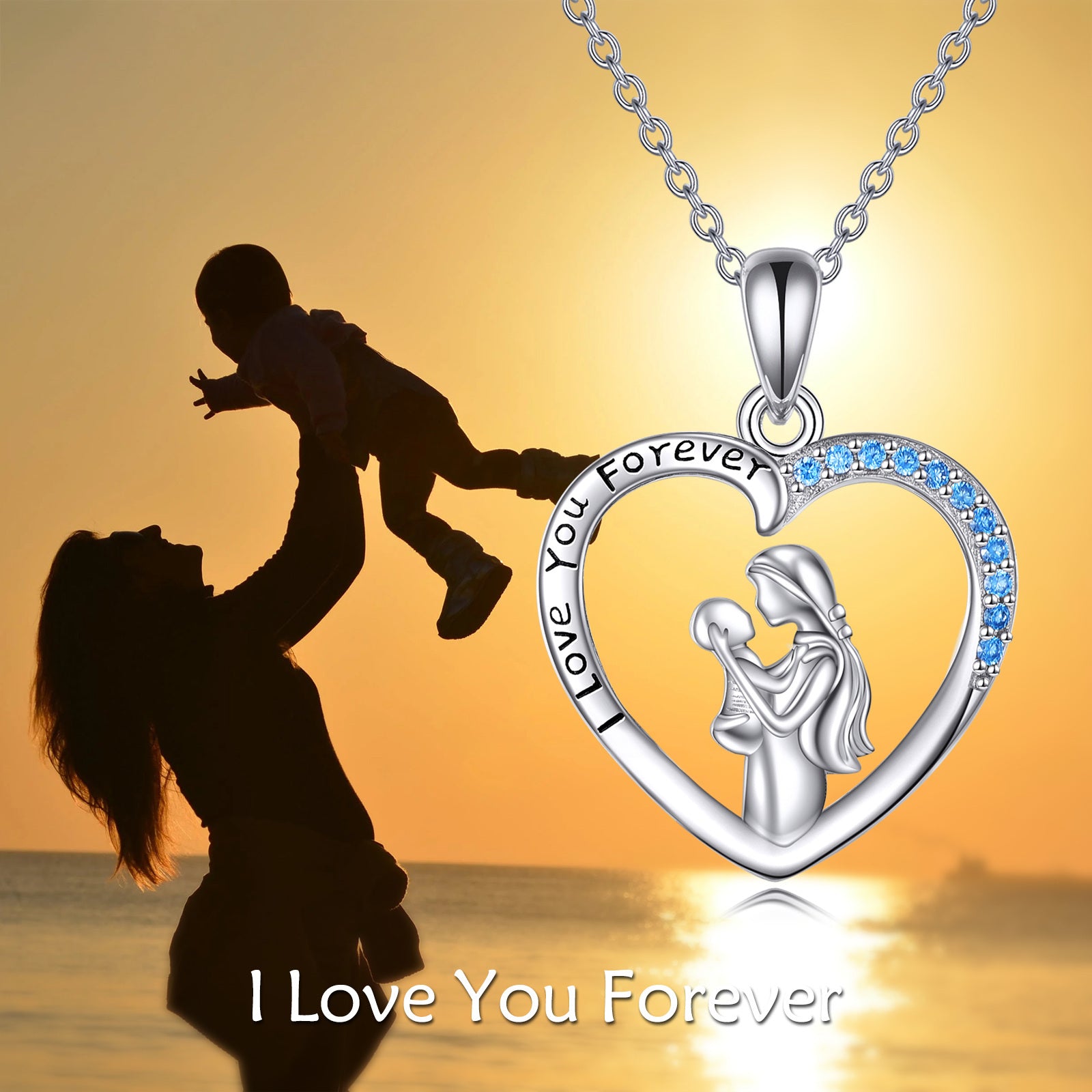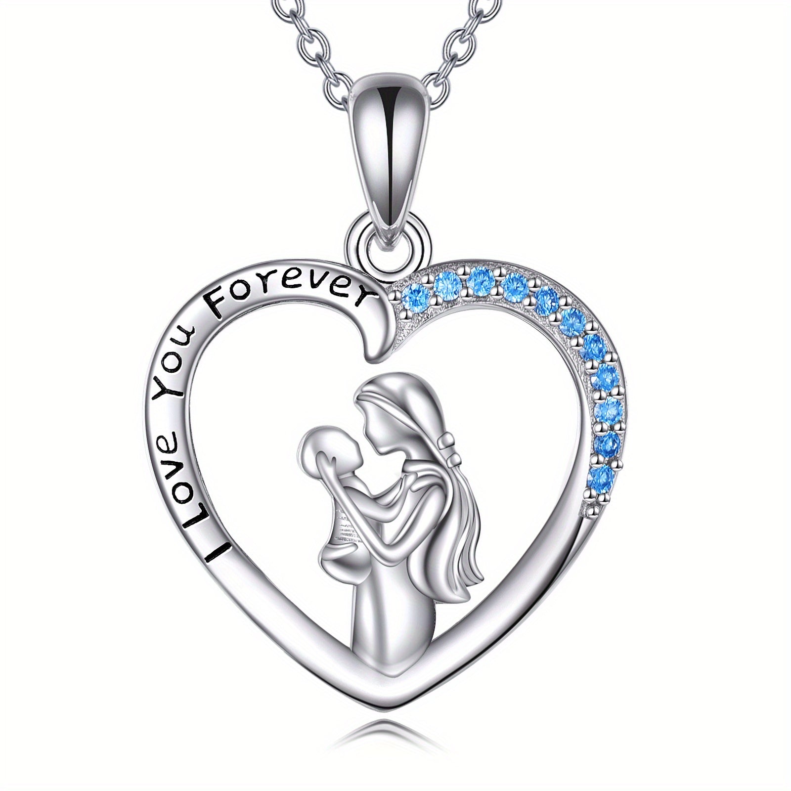 925 Sterling Silver Mum Heart Necklace Pendant Mother Baby Necklace