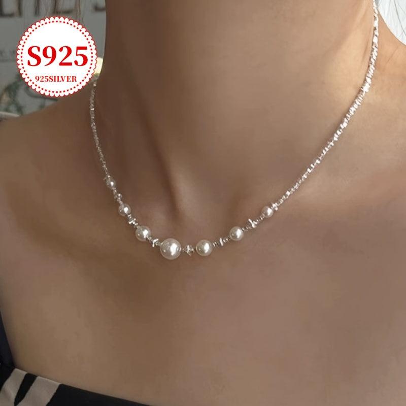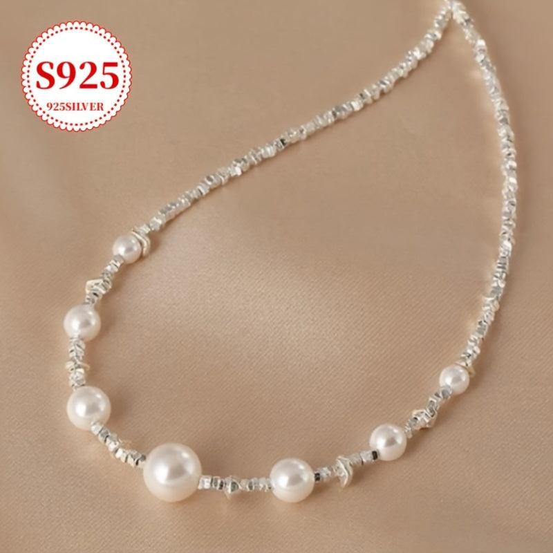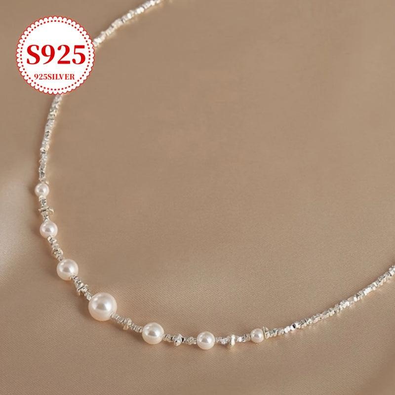 925 Sterling Silver Necklace for Women with Shell Pearl Accents