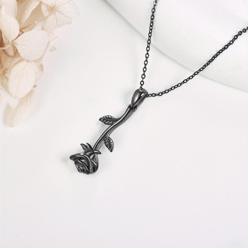 This gothic rose necklace is made of 925 sterling silver, featuring a beautiful rose pendant design. Perfect for women who love gothic style jewelry.