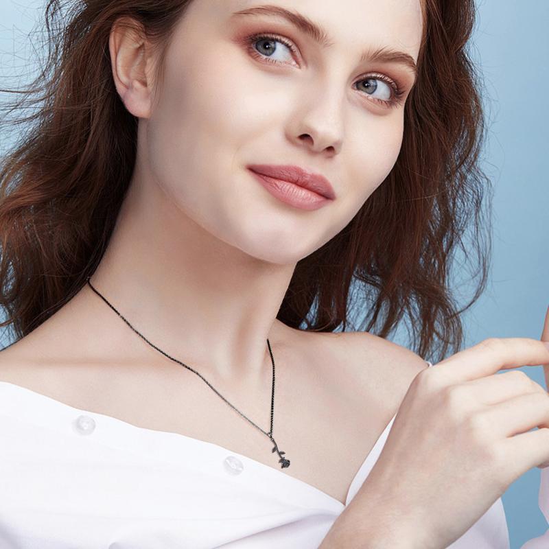 925 Sterling Silver Rose Pendant Necklace Gothic Jewellery for Women
