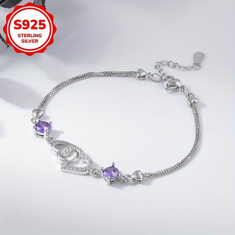 This double heart bracelet is made of 925 sterling silver with synthetic cubic zirconia. It weighs only 3.1g, making it perfect for daily wear, parties, and gift-giving on special occasions.