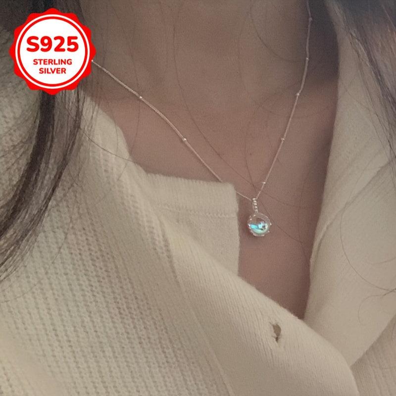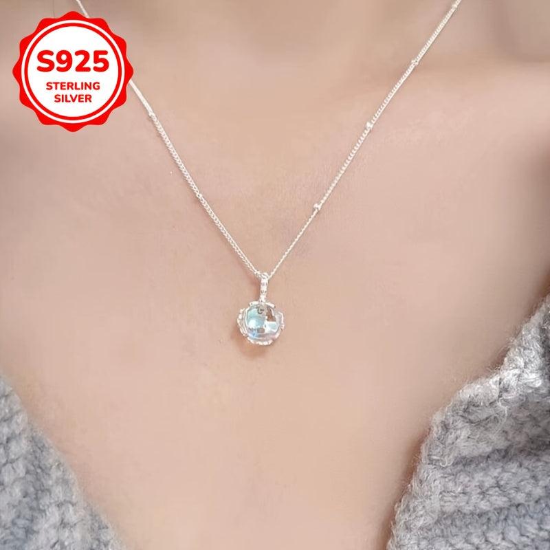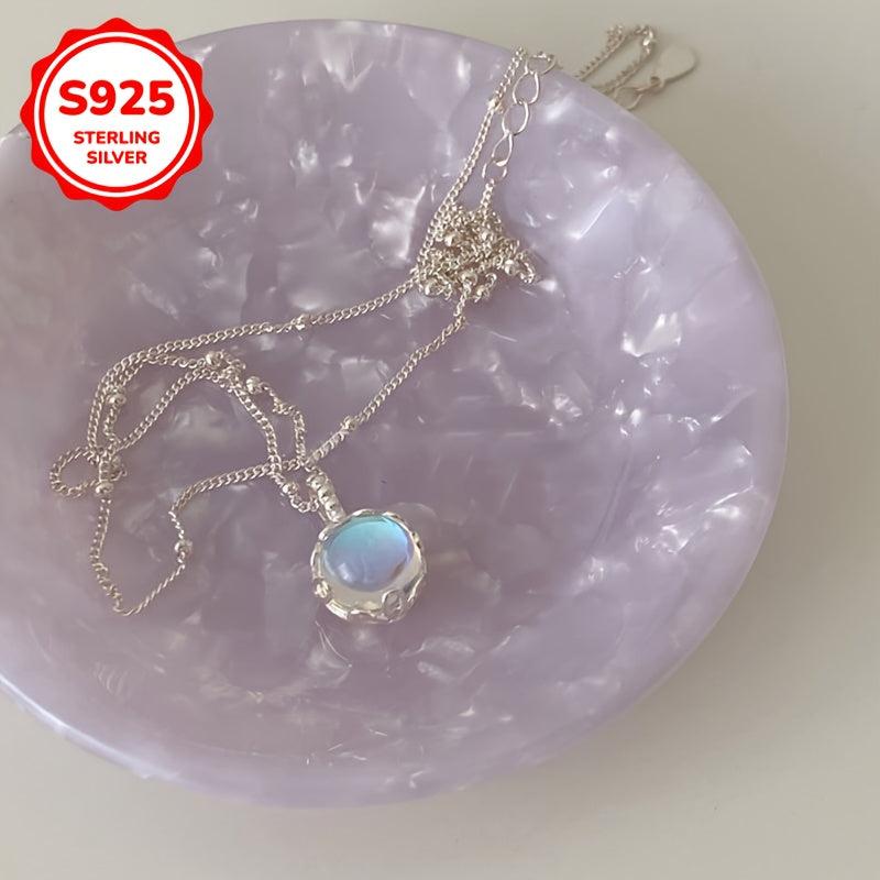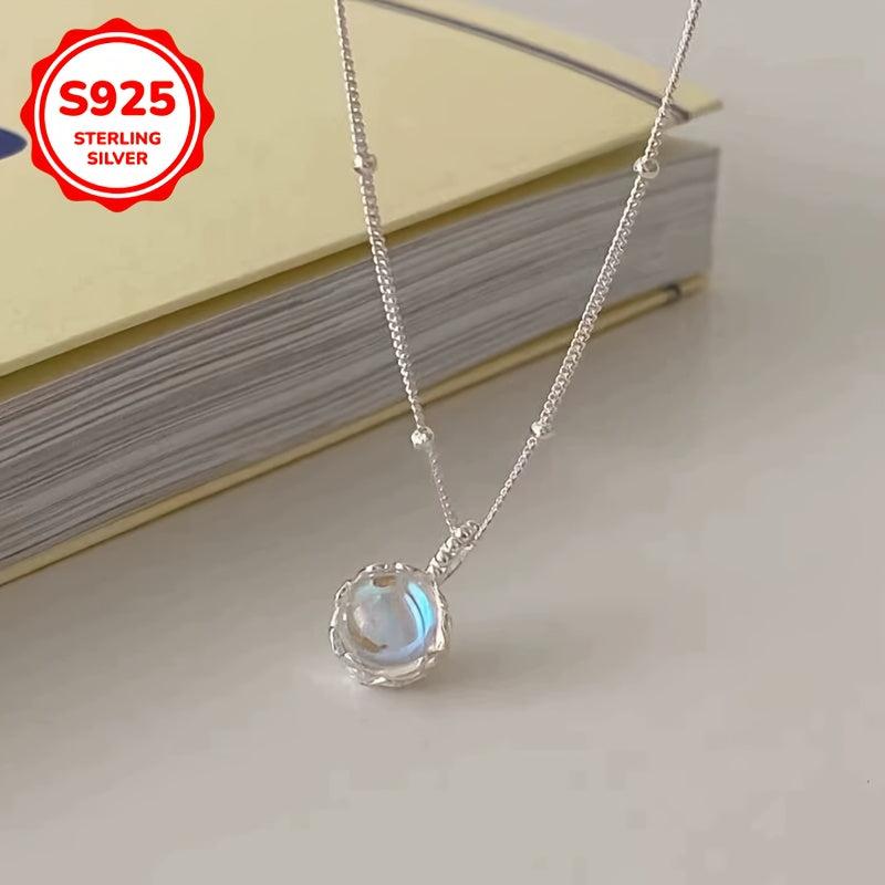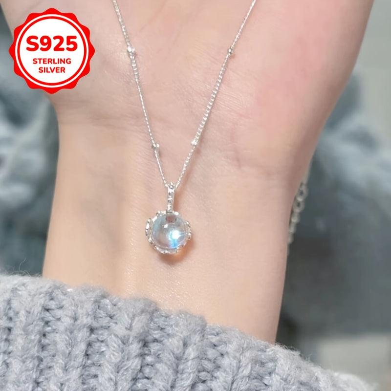 This S925 silvery moonstone pendant necklace is a perfect accessory for casual wear, holidays, and weddings. It makes a thoughtful gift for any occasion.