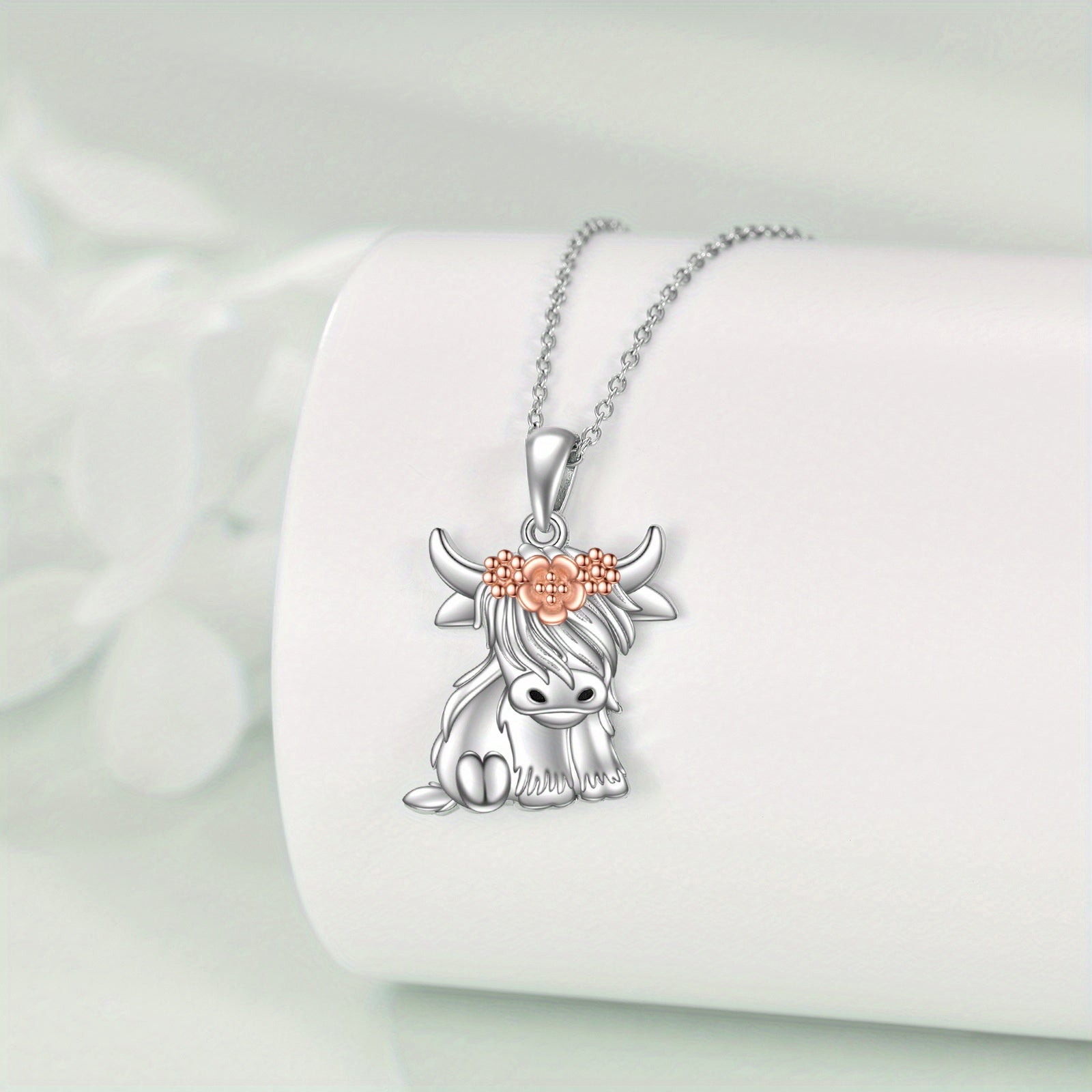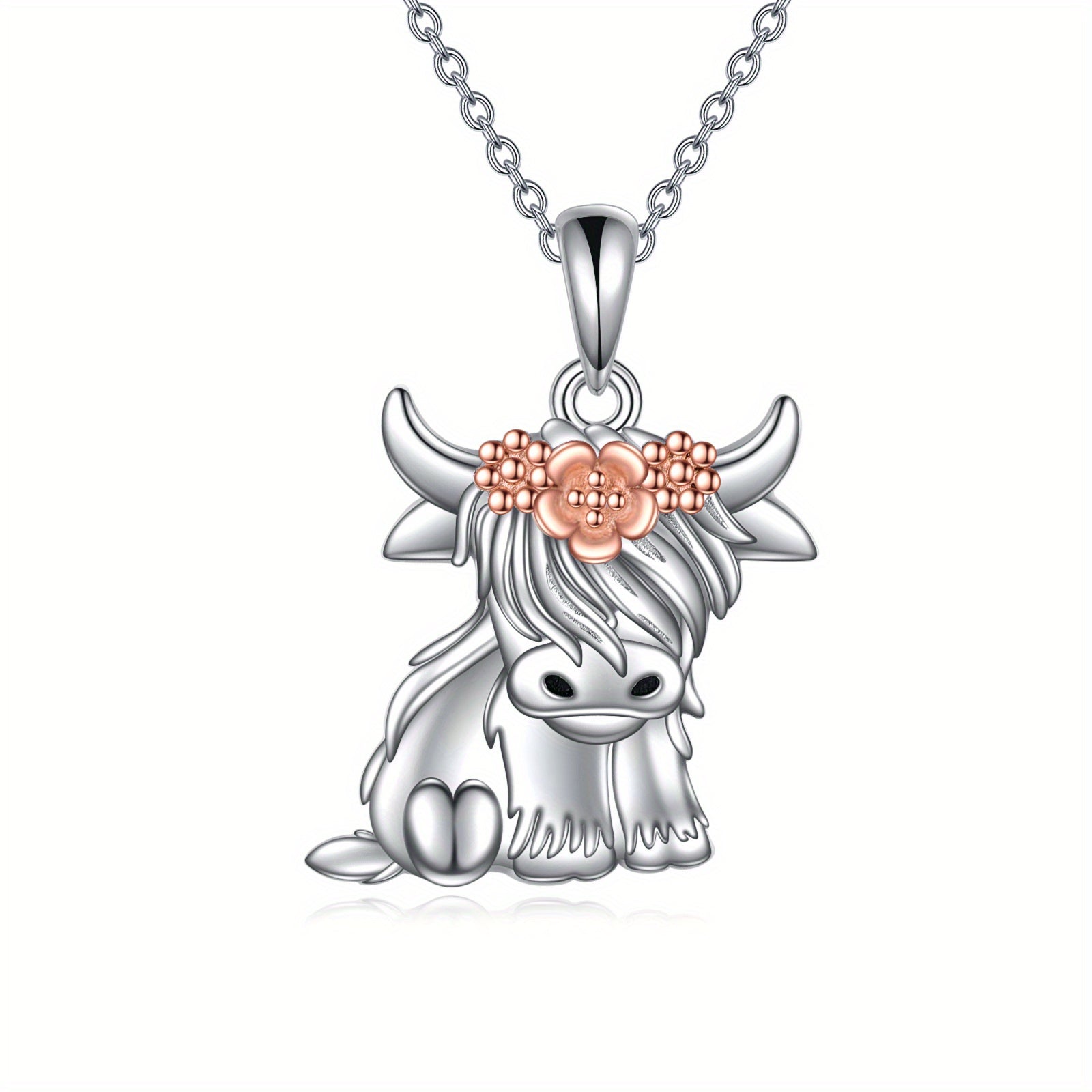 Alpine Cow Necklace 925 Sterling Silver Scottish Cow Pendant Necklace Jewelry