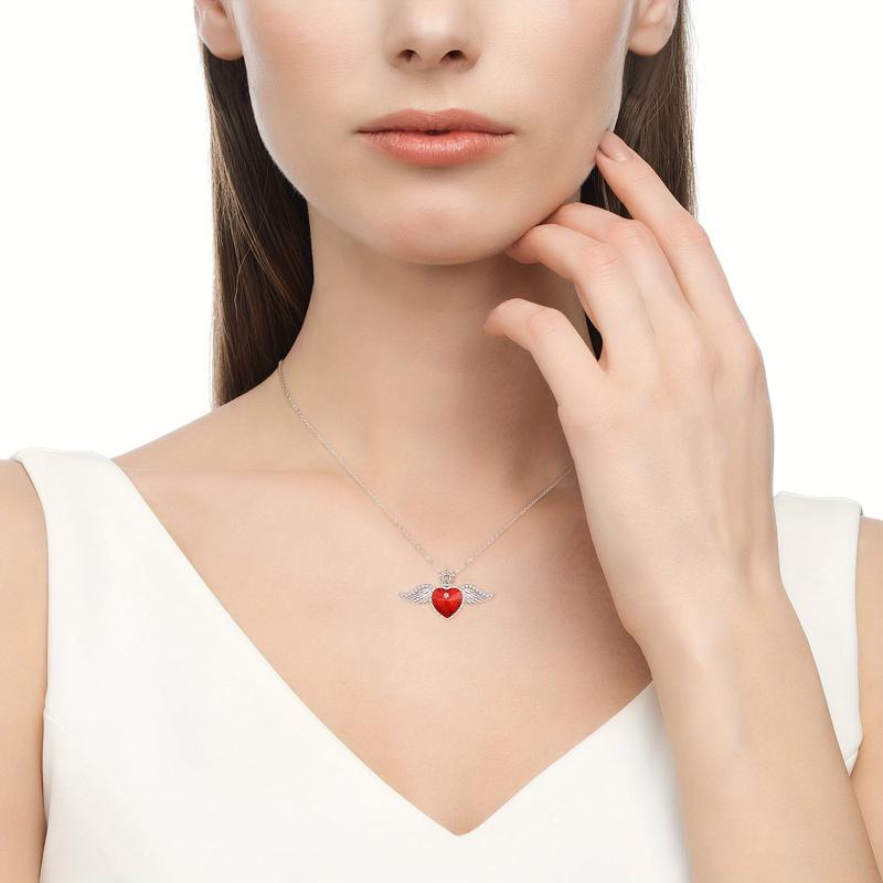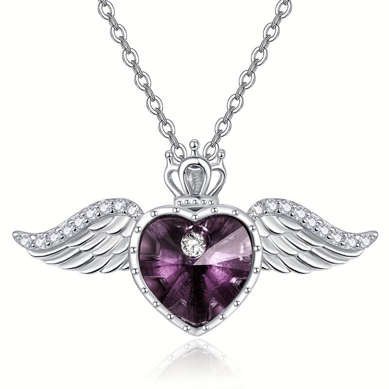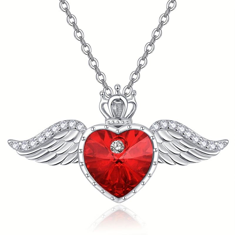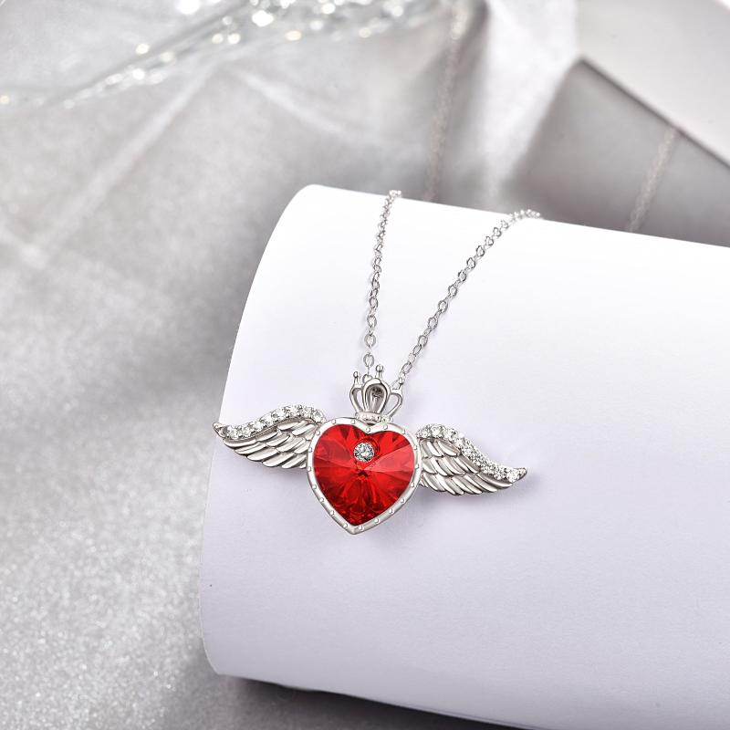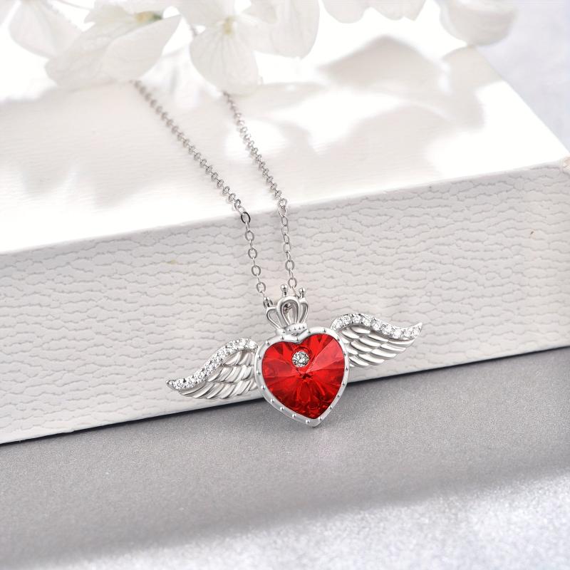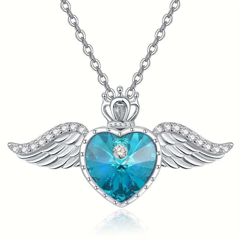 This 925 sterling silver necklace features a beautiful love heart pendant with angel wings and queen crown embellishments. It is a perfect gift for birthdays or special occasions.