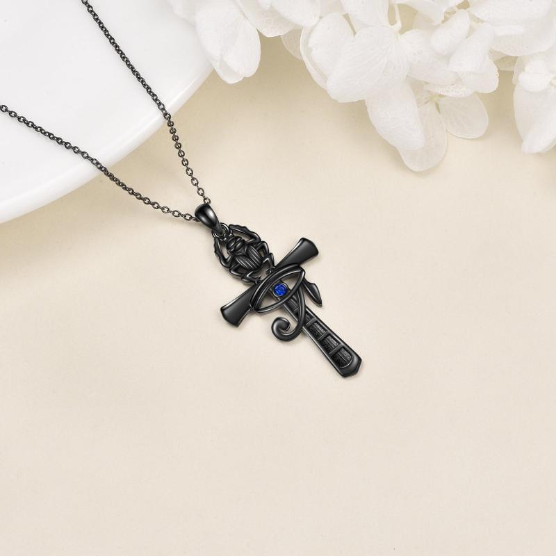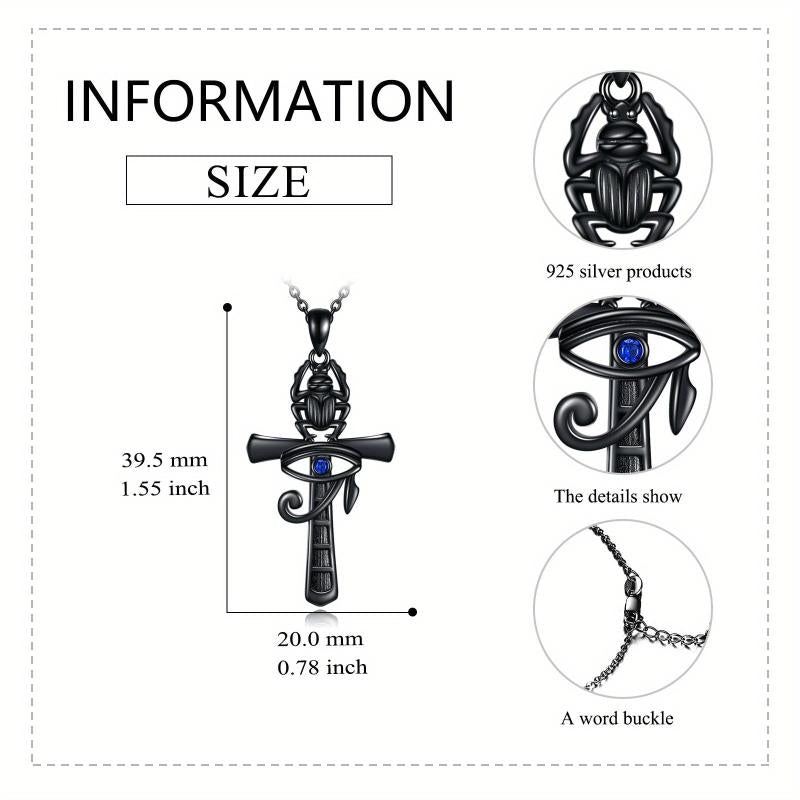 Sterling silver ancient Egyptian jewelry featuring the Ankh, Eye of Horus, and Scarab. Perfect gift for men and women.
