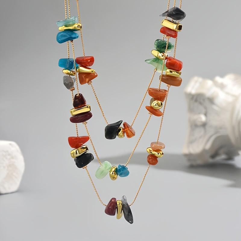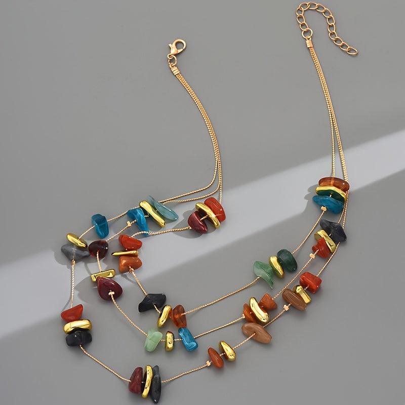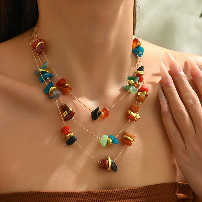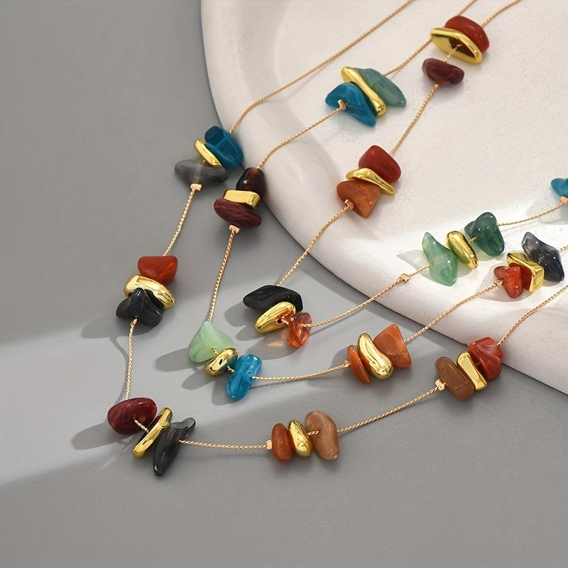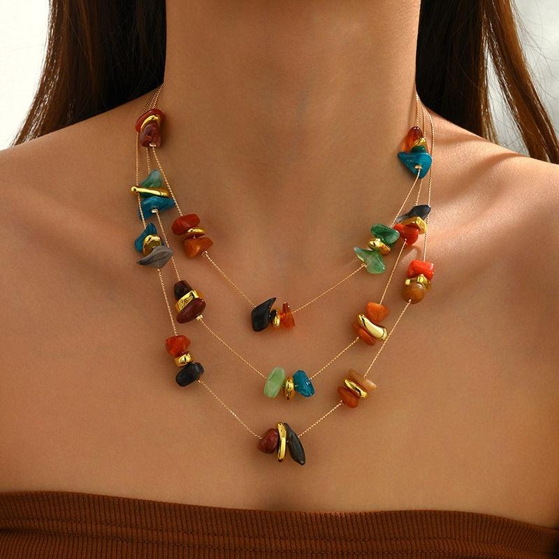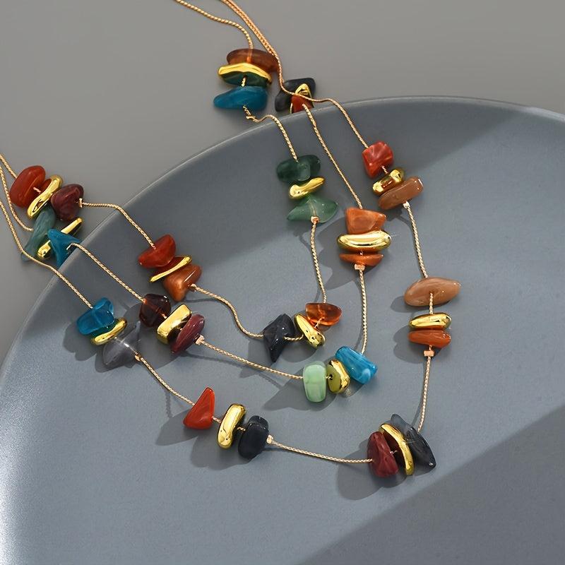 Bohemian Resin Bead Necklace for Women KC Golden Plated Layered Jewelry
