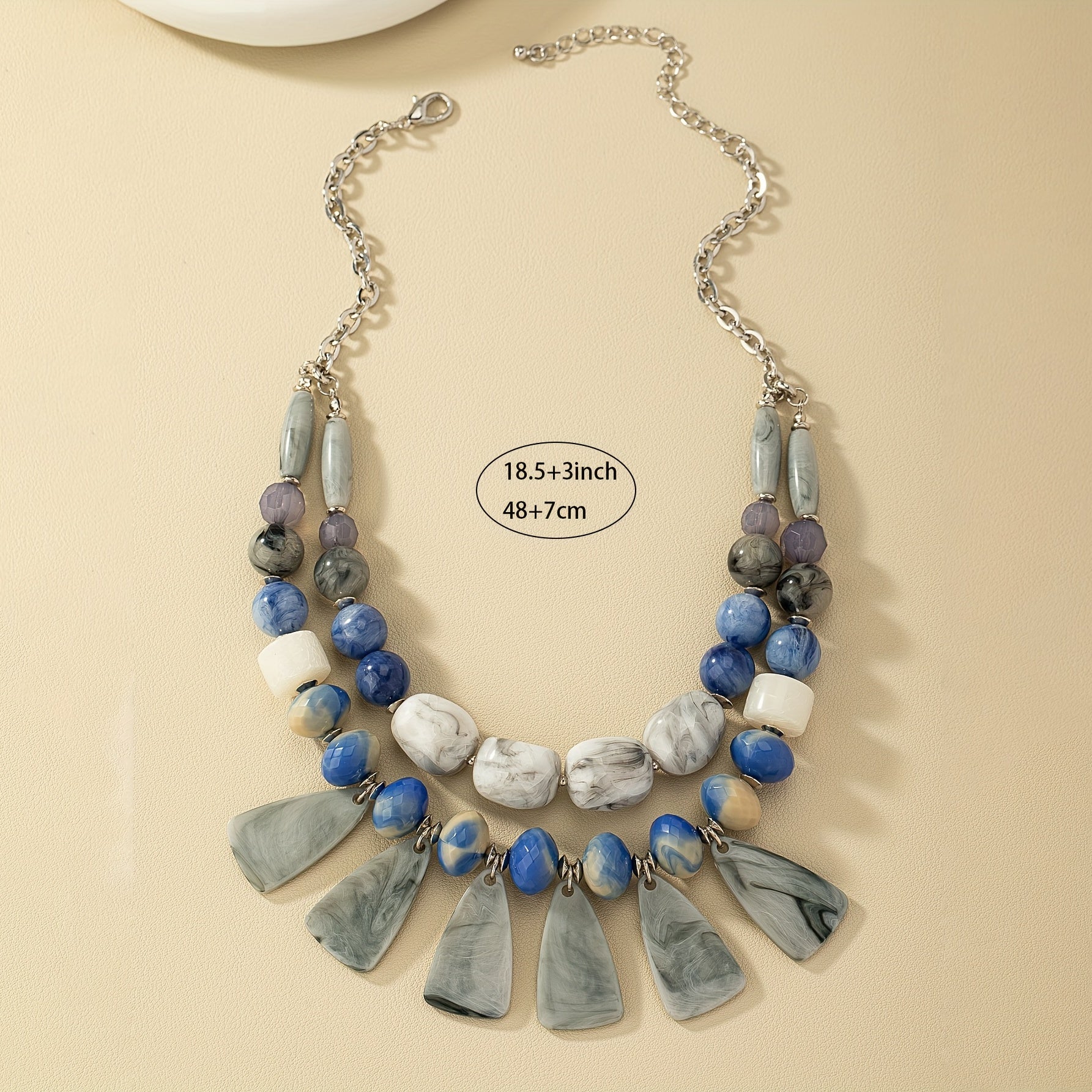 Elevate your style with this stunning double-layer necklace featuring exaggerated beading and bohemian tassel design. The turquoise beads add a pop of color and personality to any outfit.