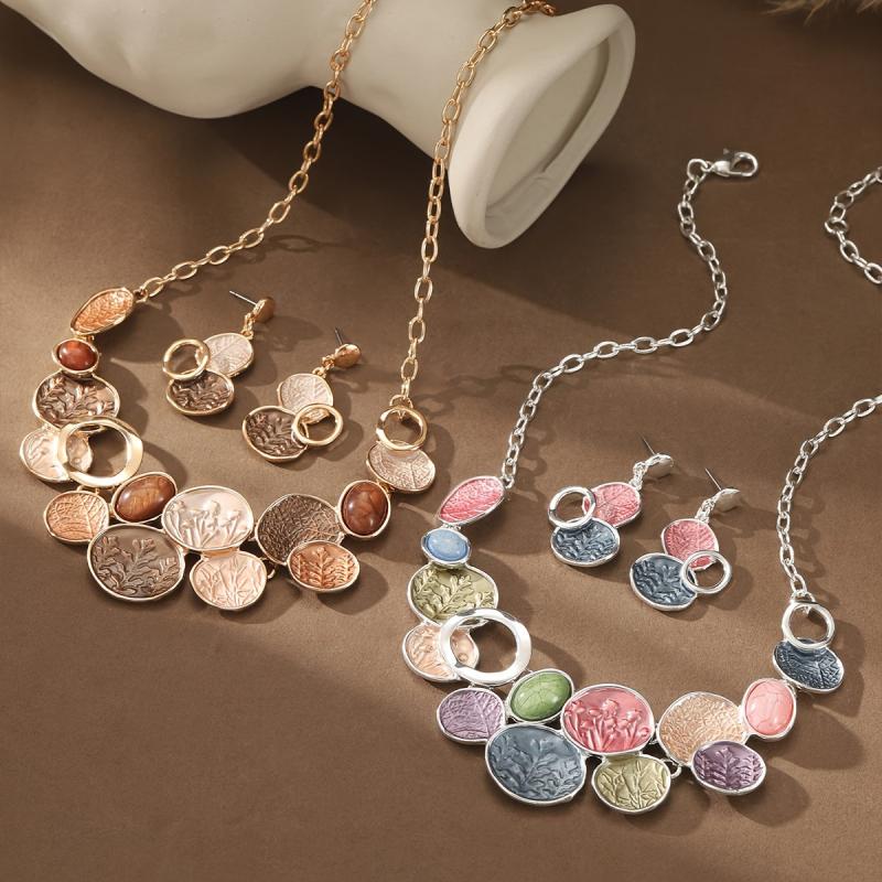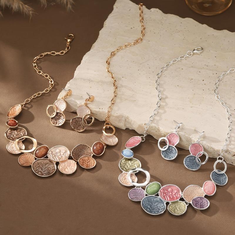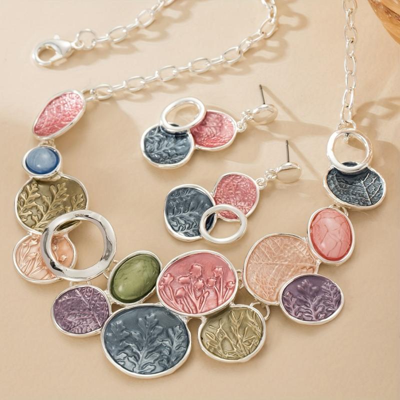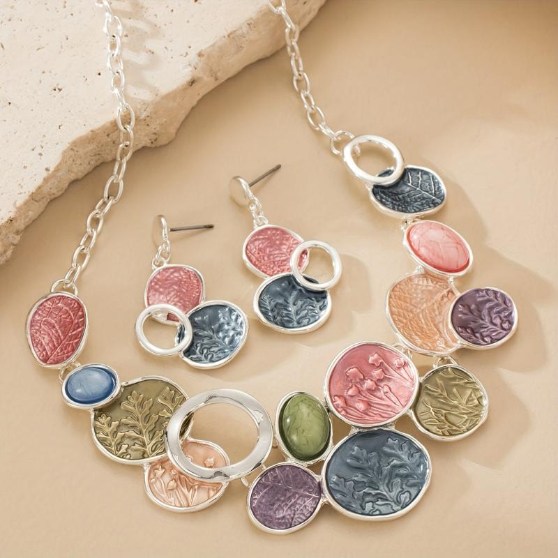 This stunning jewelry set features a round hollow tree of life design, crafted from zinc alloy with enamel and resin. Perfect for daily wear with a bohemian style.
