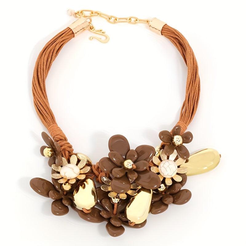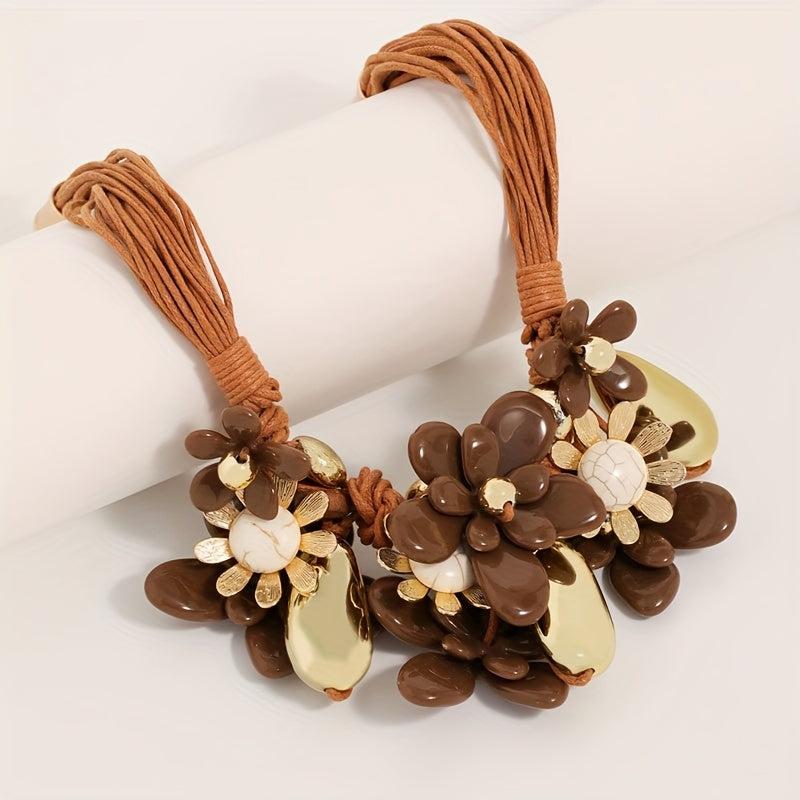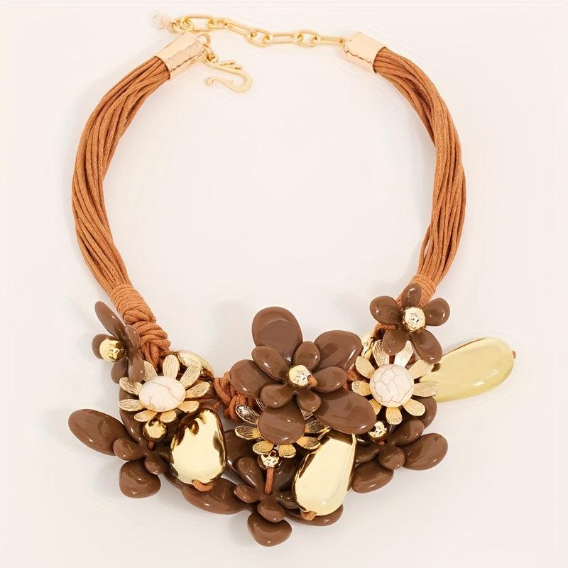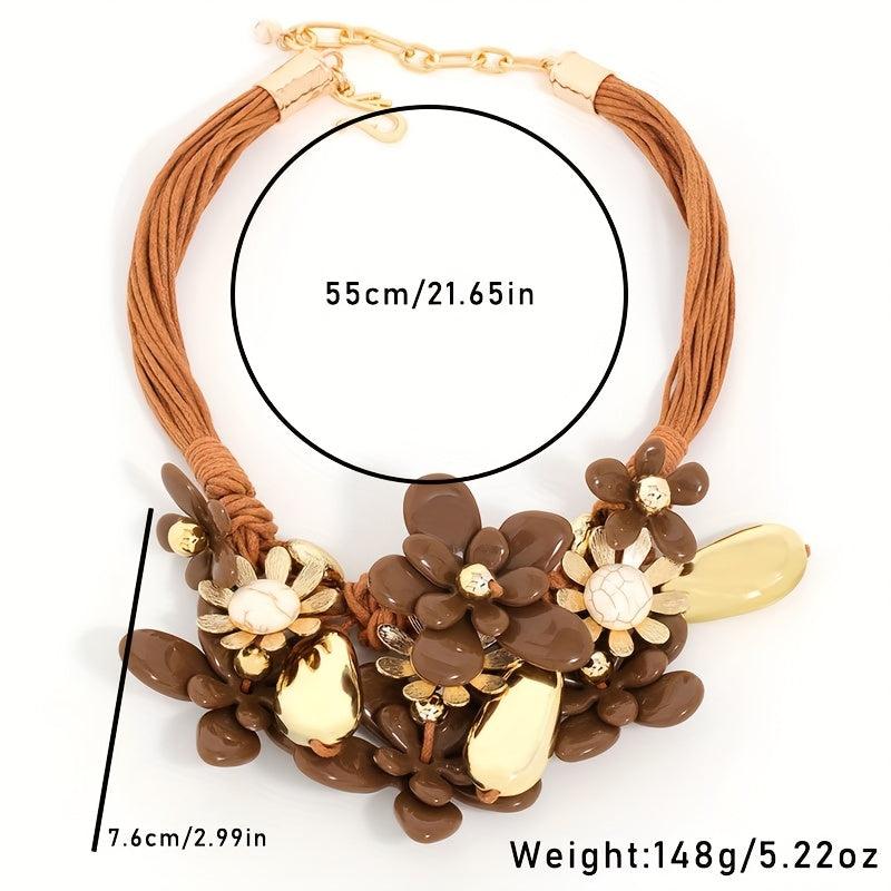 Vintage Boho style necklace perfect for daily wear or vacations. This pendant necklace features a unique design with floral and geometric elements, adding a touch of bohemian charm to your outfit.