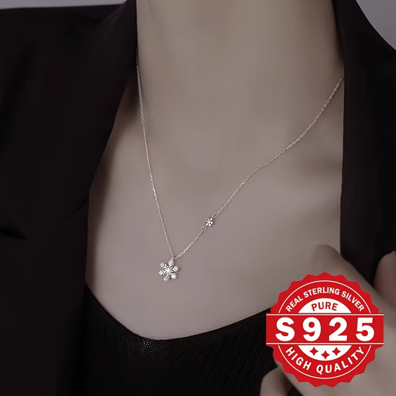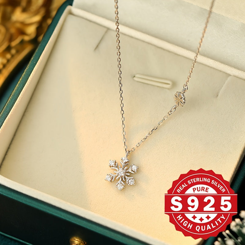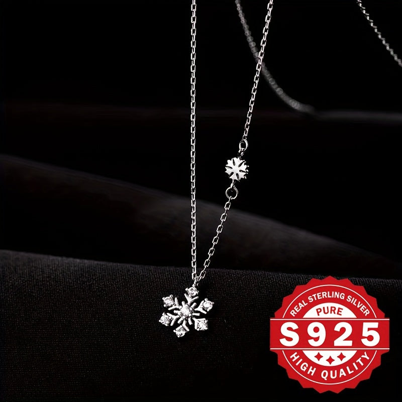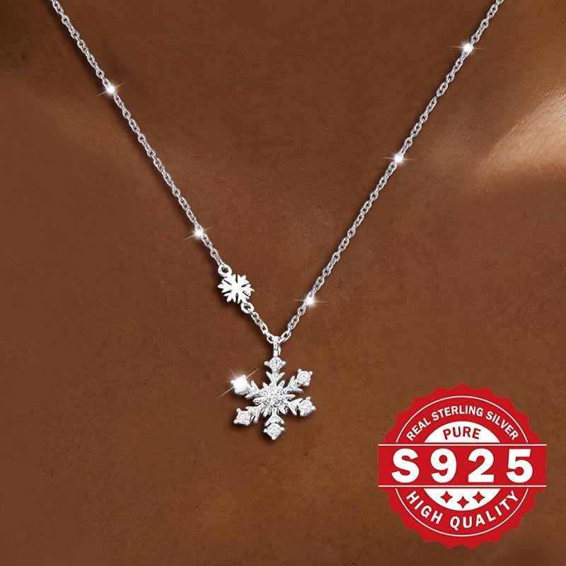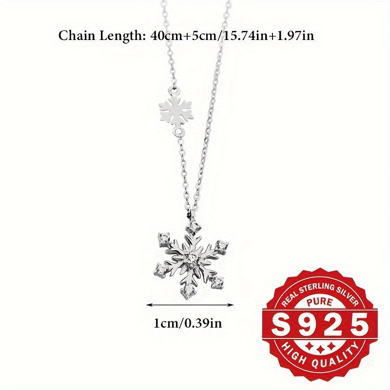 Elevate your holiday style with this boho S925 sterling silver pendant necklace featuring dual snowflake and synthetic cubic zirconia. Hypoallergenic design makes it ideal for Christmas gifts and vacation wear.