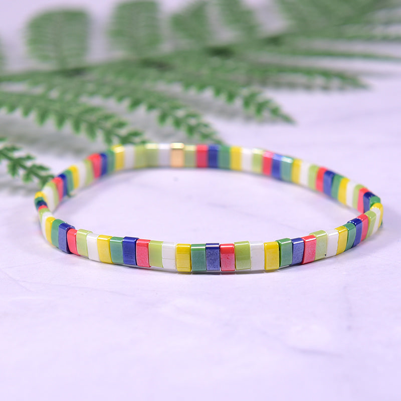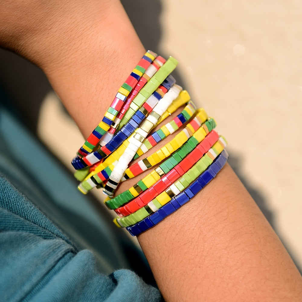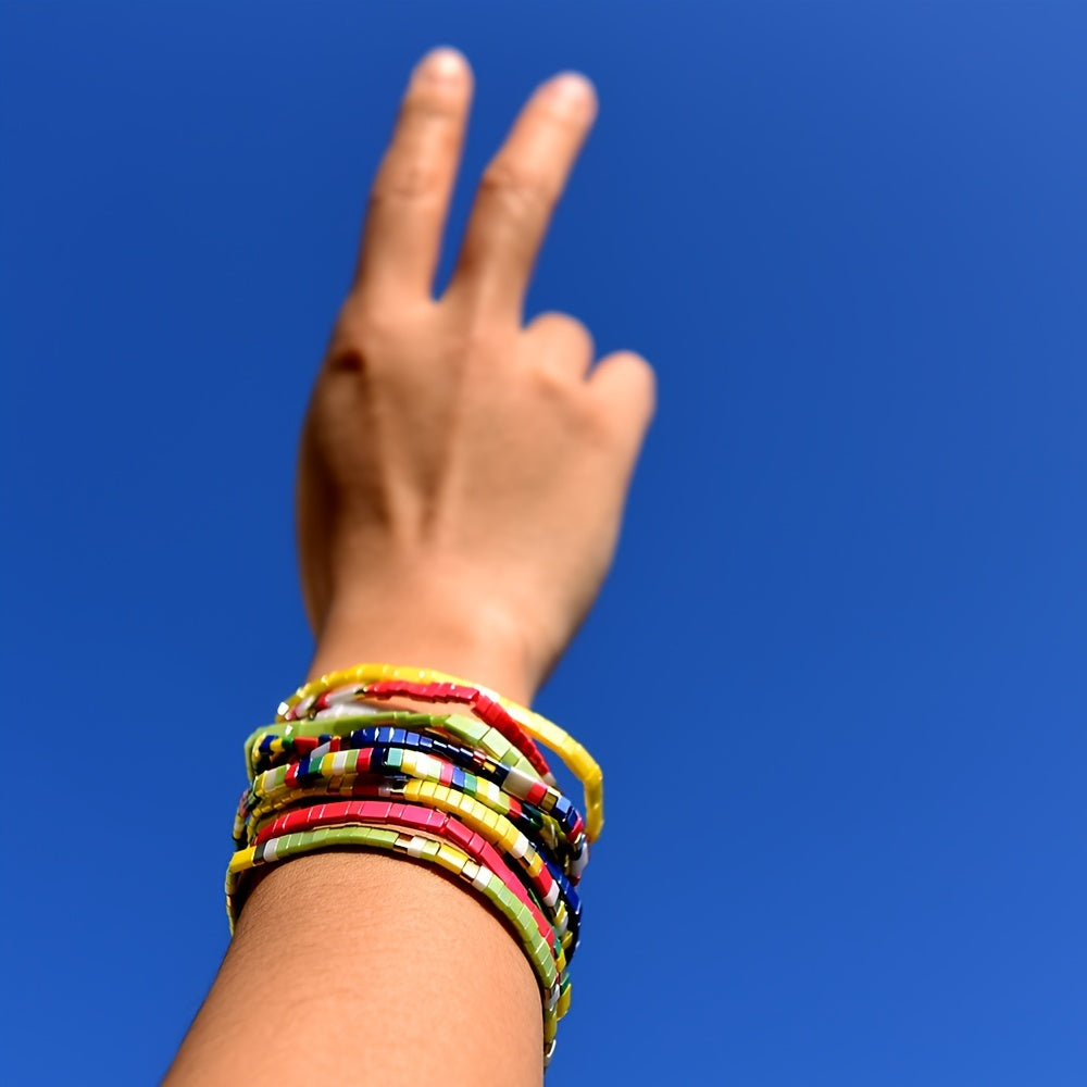This stretchy colorful beaded bracelet is a stylish hand jewelry accessory for women and girls. Perfect for adding a boho touch to your outfit.