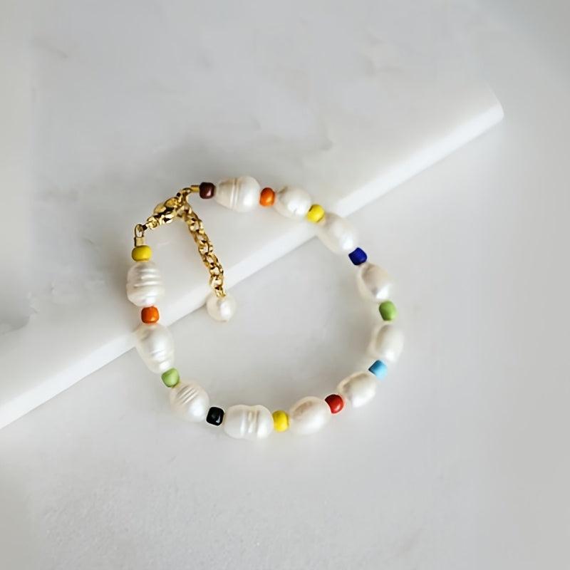 Add a touch of bohemian charm to your outfit with this natural freshwater pearl necklace or bracelet. Crafted from baroque rice shaped pearls, it's a perfect gift for her and can be worn all season long.