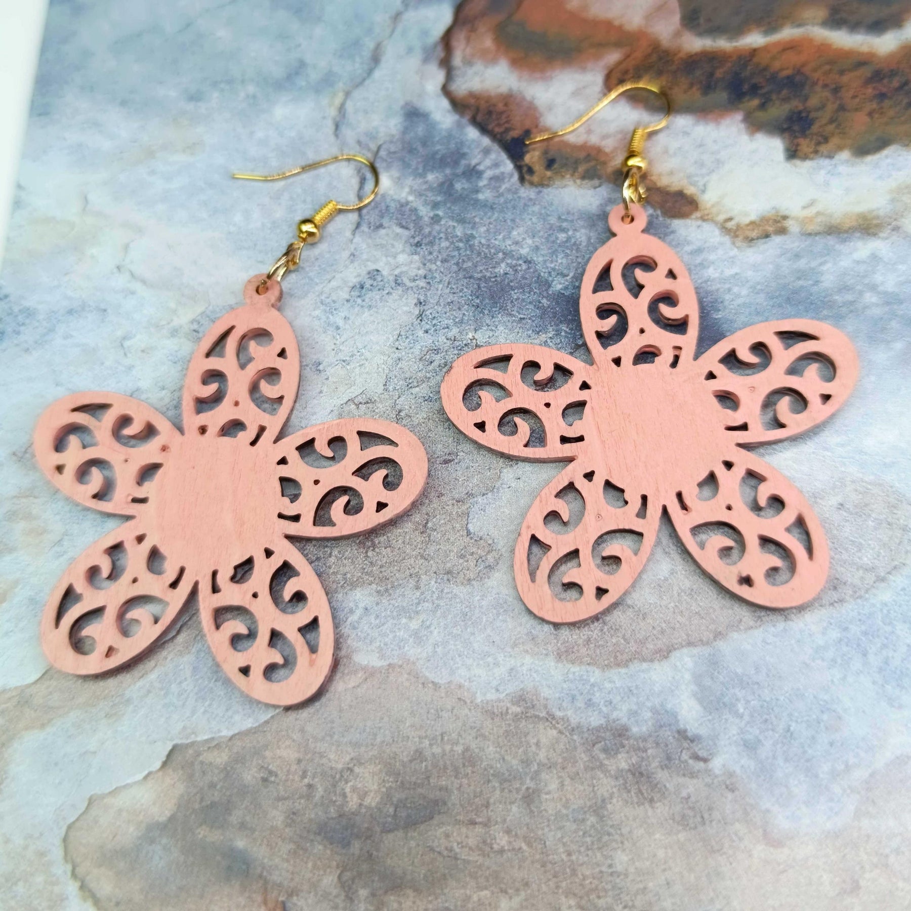 Add a touch of bohemian charm with these pink dangle earrings featuring a hollow flower design. Perfect gift for women and girls.