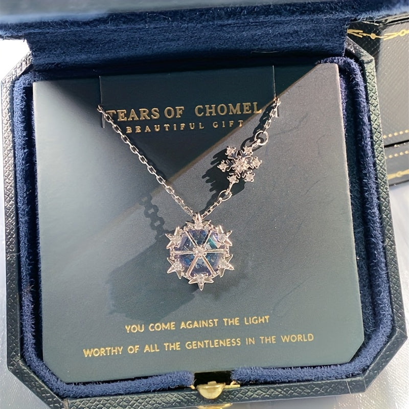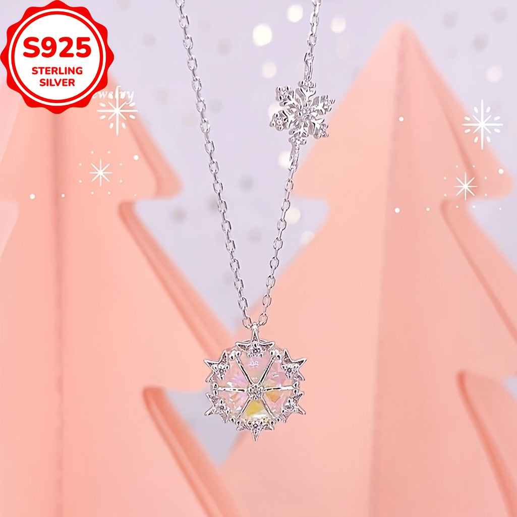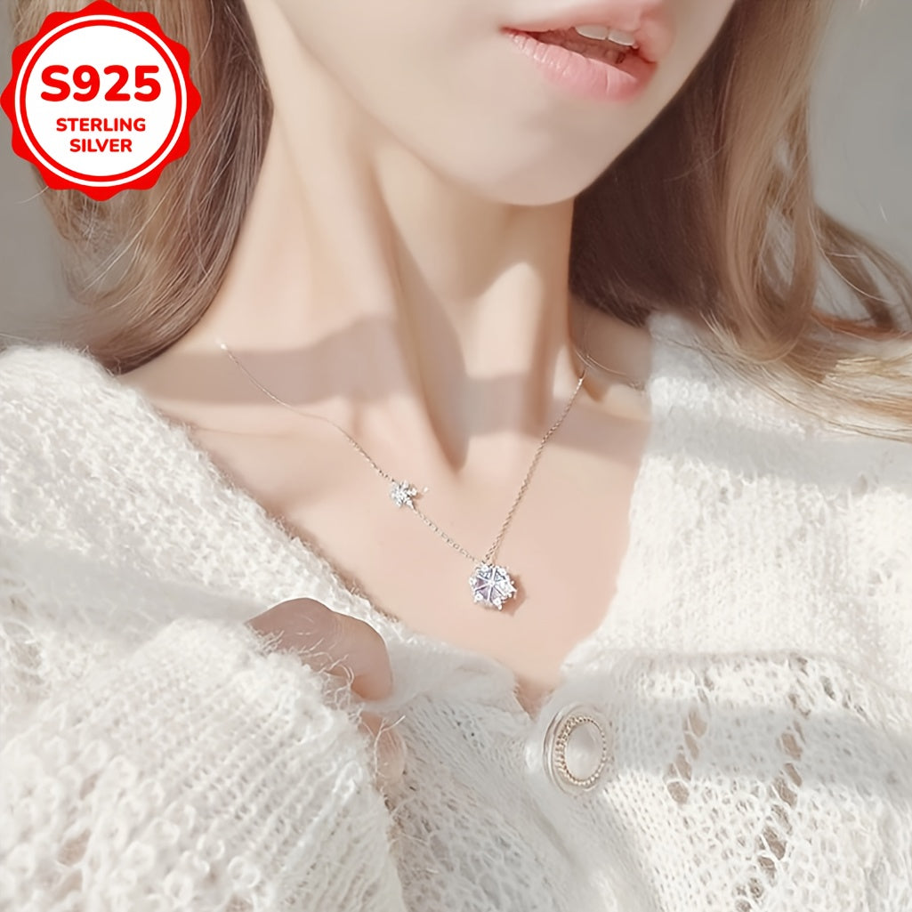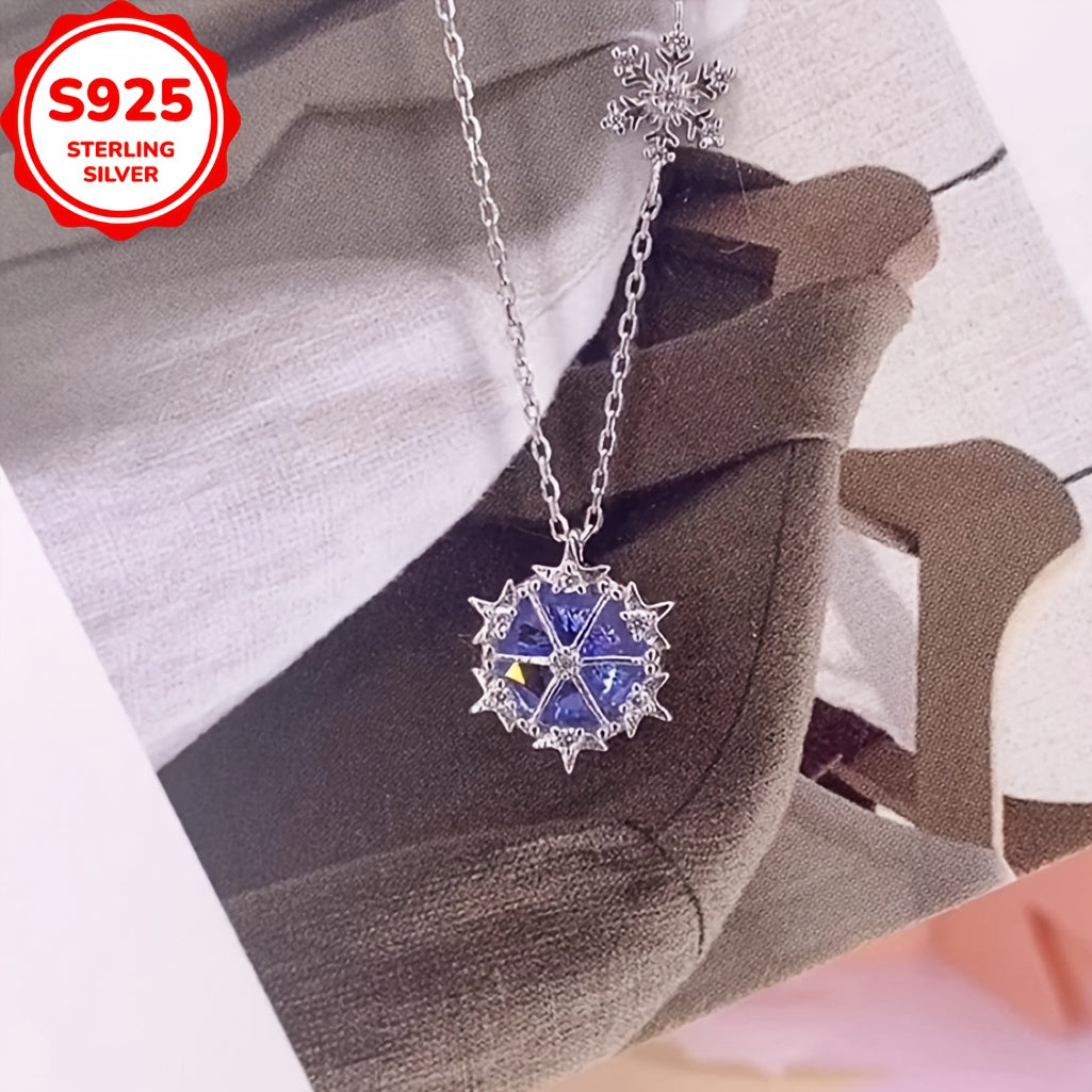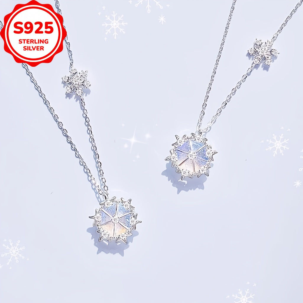 This vintage boho style necklace features a snowflake pendant made from 925 sterling silver plated with synthetic zirconia. It comes with a clavicle chain, perfect for daily wear or as a gift for women.