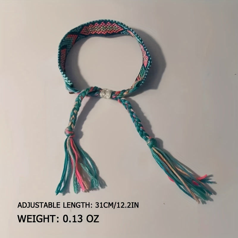 Add a touch of bohemian style to your summer beach look with this colorful tassel bracelet. The chunky rope design makes it a perfect hand jewelry decor.