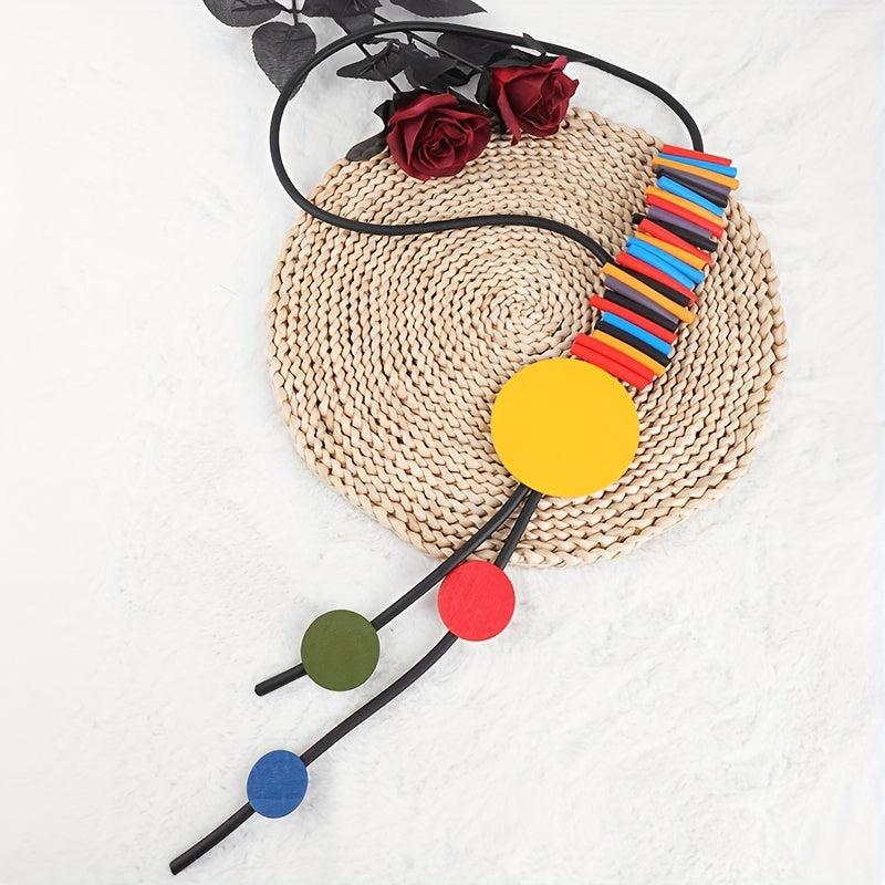 Add a touch of boho tribal style with this long Y shape rubber necklace. Perfect for casual wear or as a statement piece.