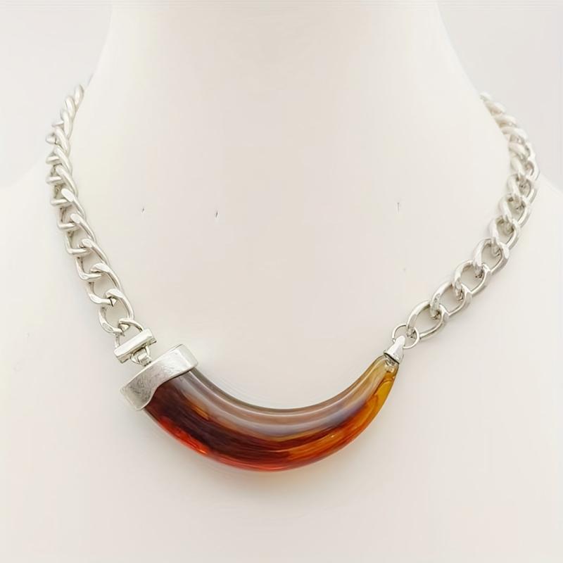 Make a statement with this retro bohemian necklace featuring a bold resin animal horn pendant. The necklace is lightweight, durable, and perfect for women looking to add a unique piece to their jewelry collection.