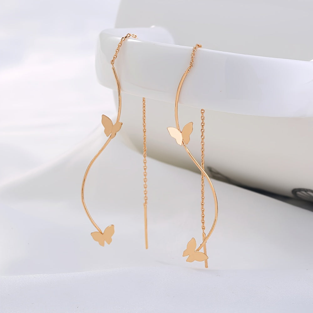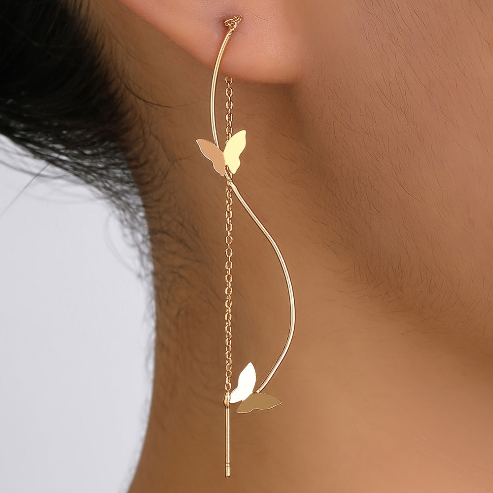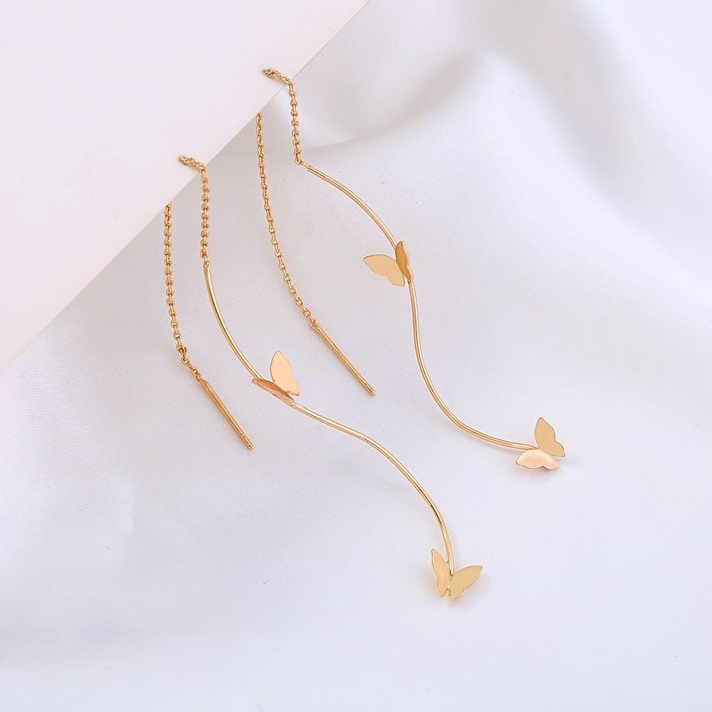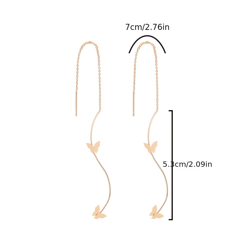 Add a touch of whimsical beauty to your look with these butterfly shape threader earrings. Perfect for everyday wear or special occasions.