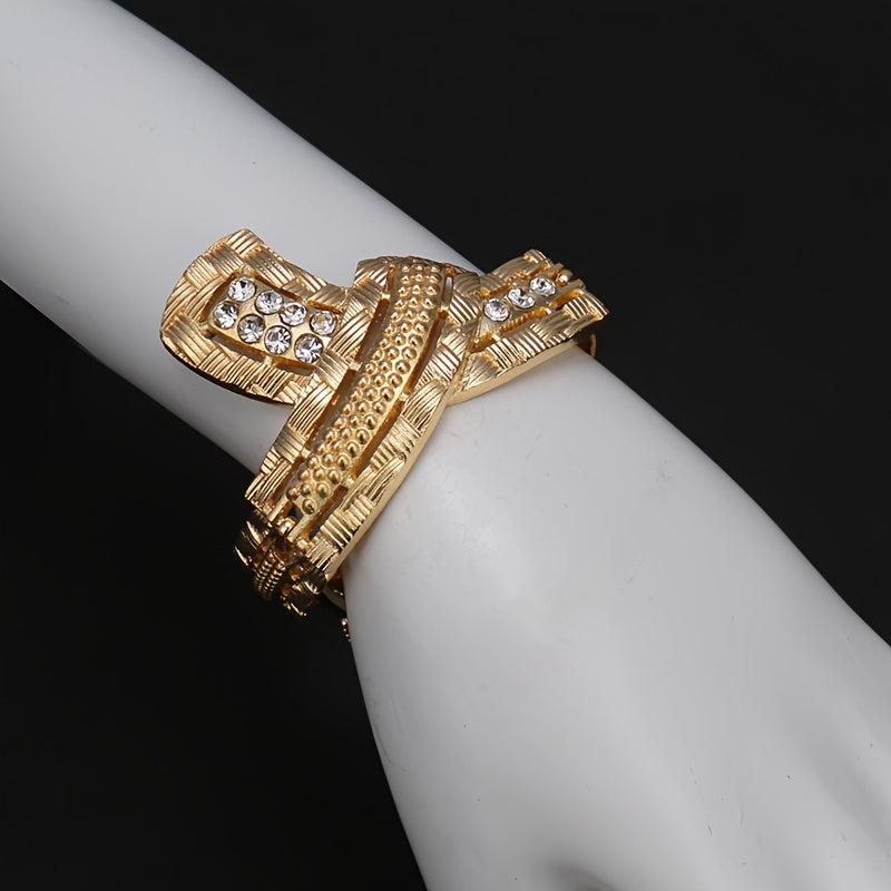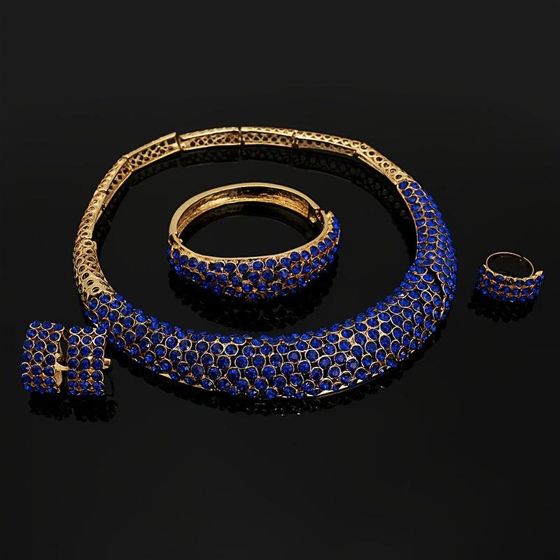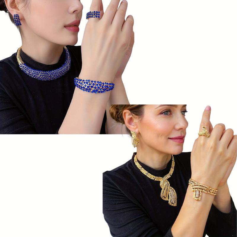 This set of rhinestone jewelry for women features a classic and urban style. Made from alloy with unique plating, it is versatile for daily wear and special occasions. An ideal gift for your mother.