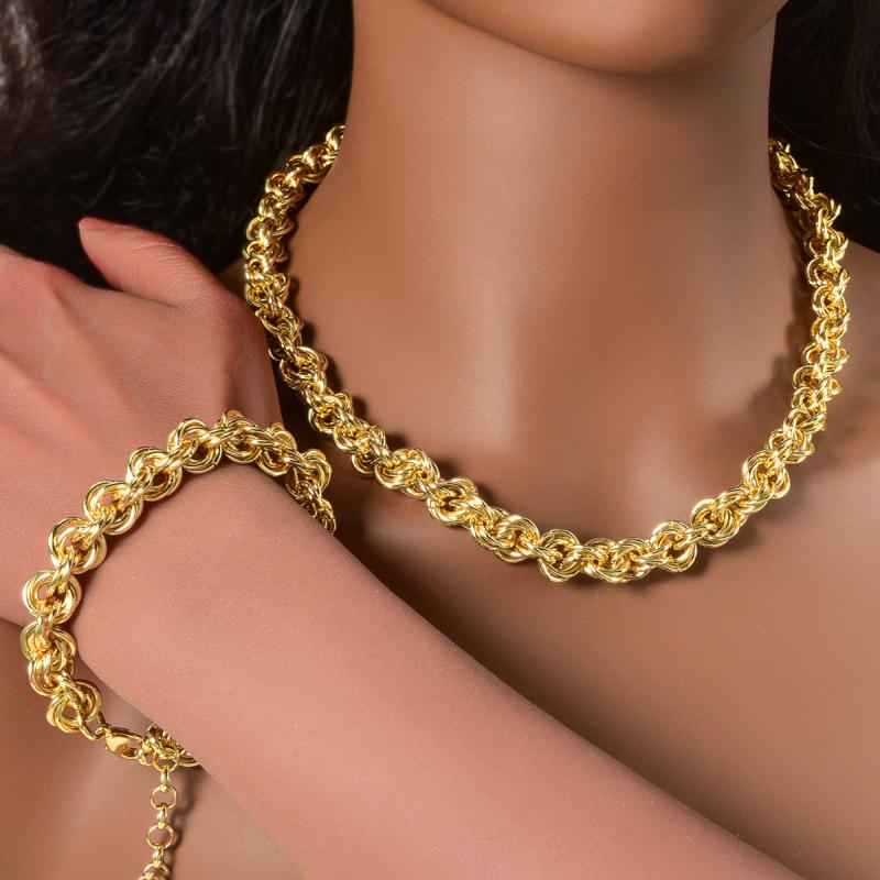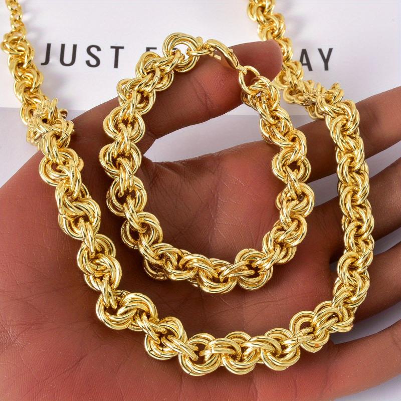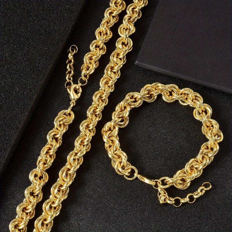 This set features an interlocking chain design that adds a touch of urban style to your daily party look. Made of high-quality copper, this set is durable and trendy.