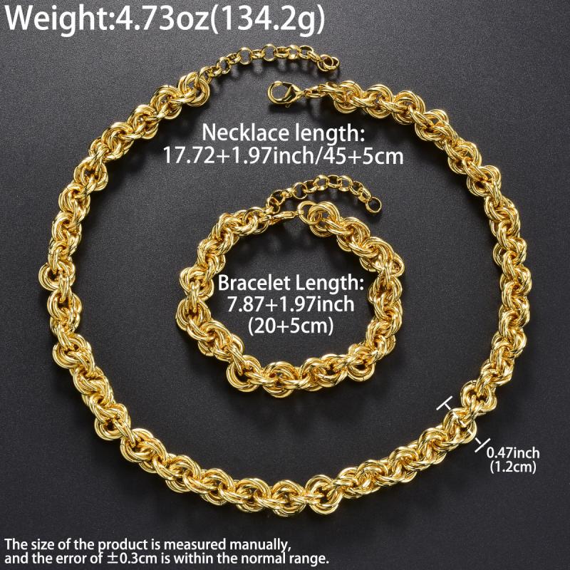 Copper Necklace & Bracelet Set, Hip Hop Style