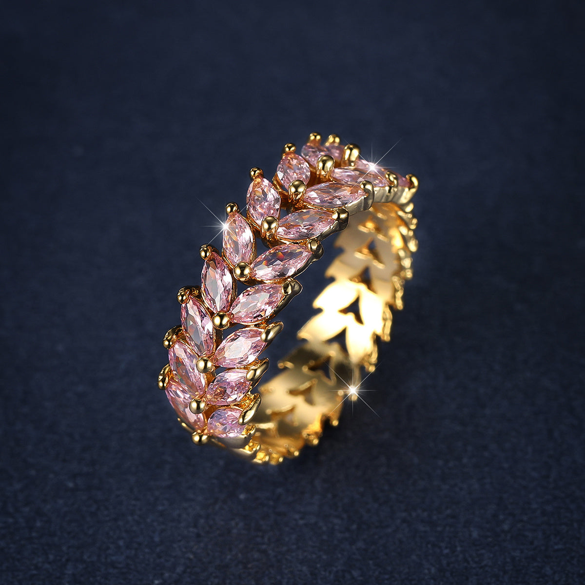 This beautiful bridal wedding ring features double rows of zircon on a copper band, making it a stunning choice for any bride. The ring exudes elegance and charm.