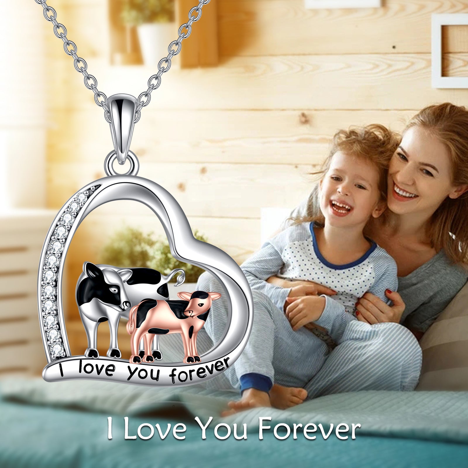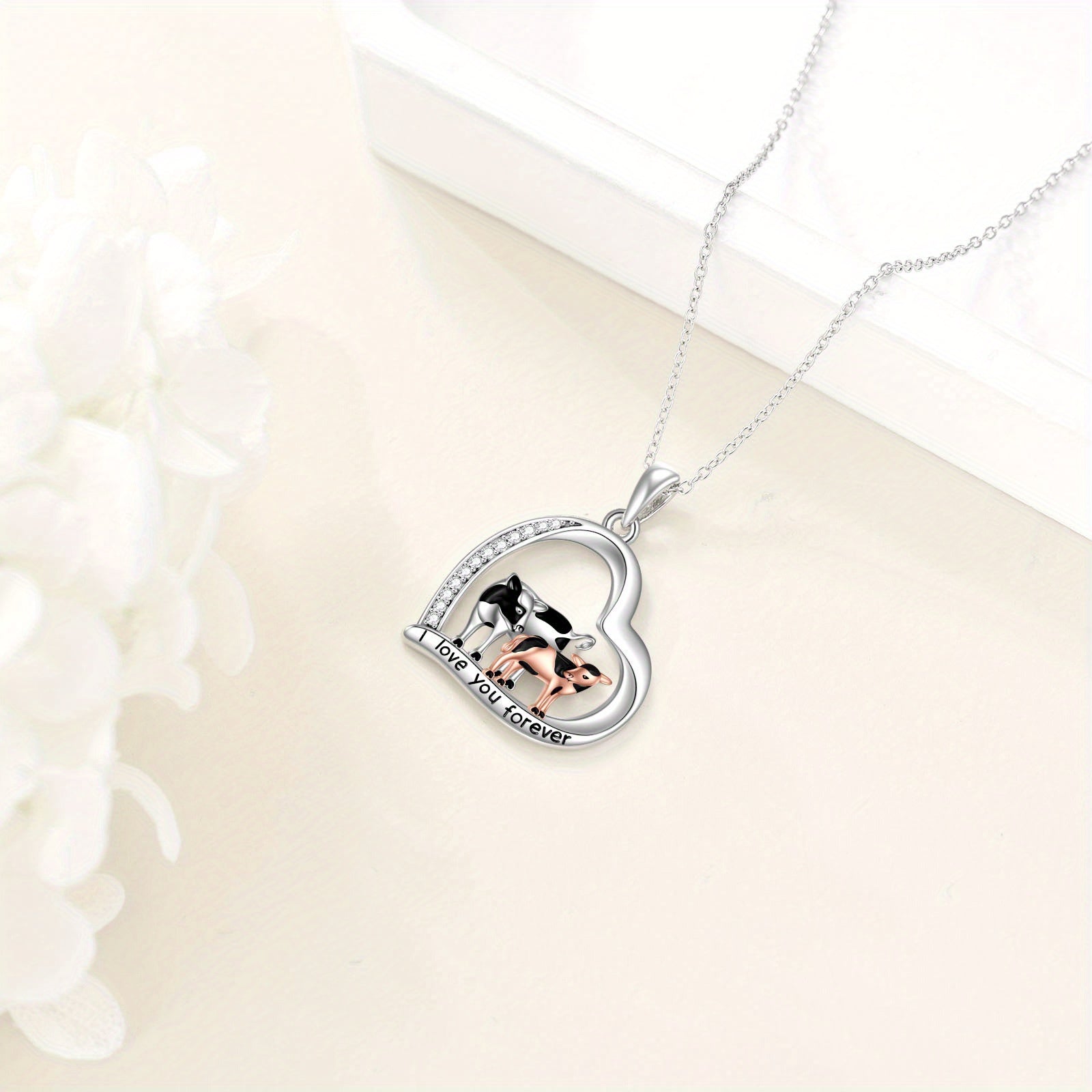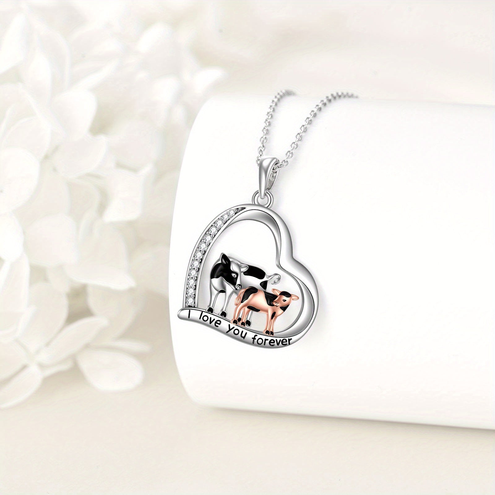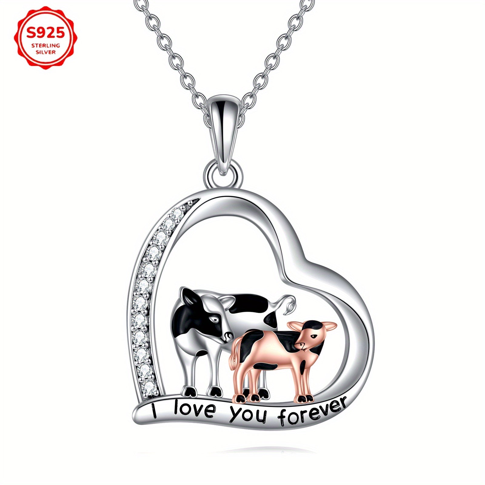 This stunning sterling silver necklace features a charming cow pendant, making it a perfect gift for sisters, mothers, and daughters. Ideal for birthdays or Christmas.