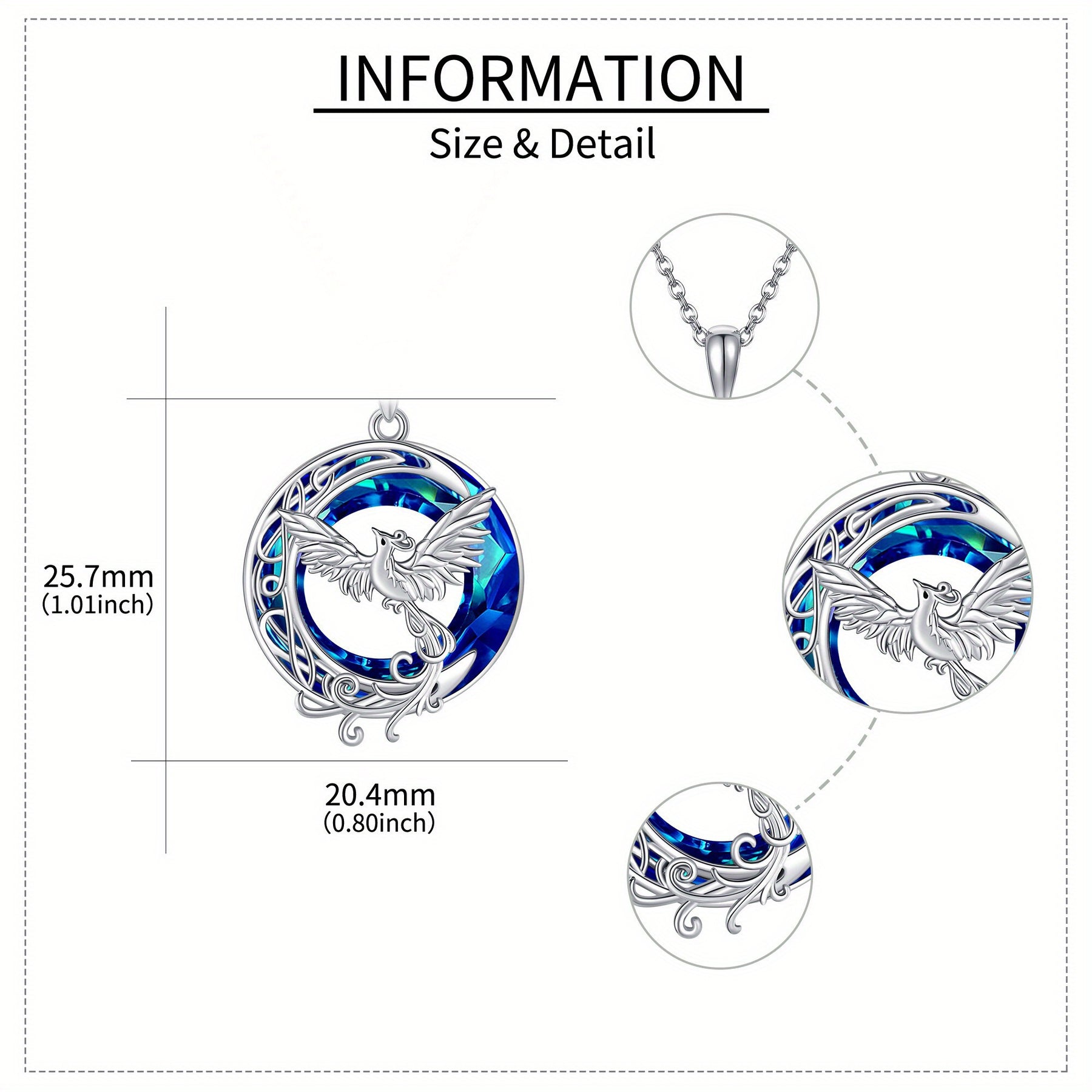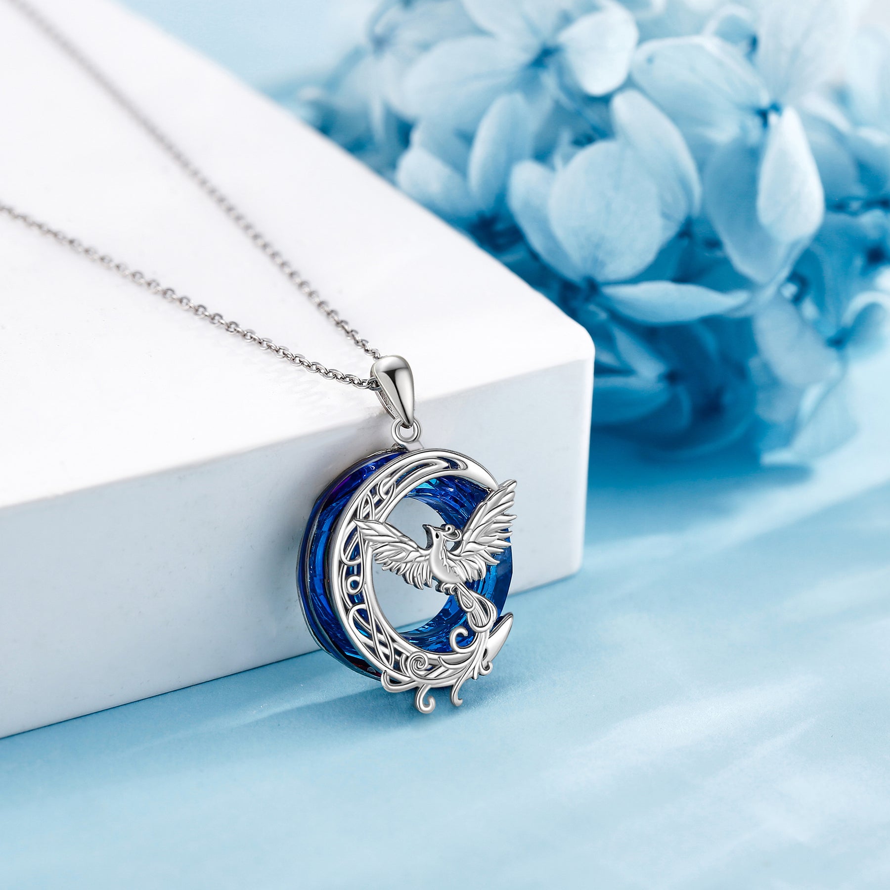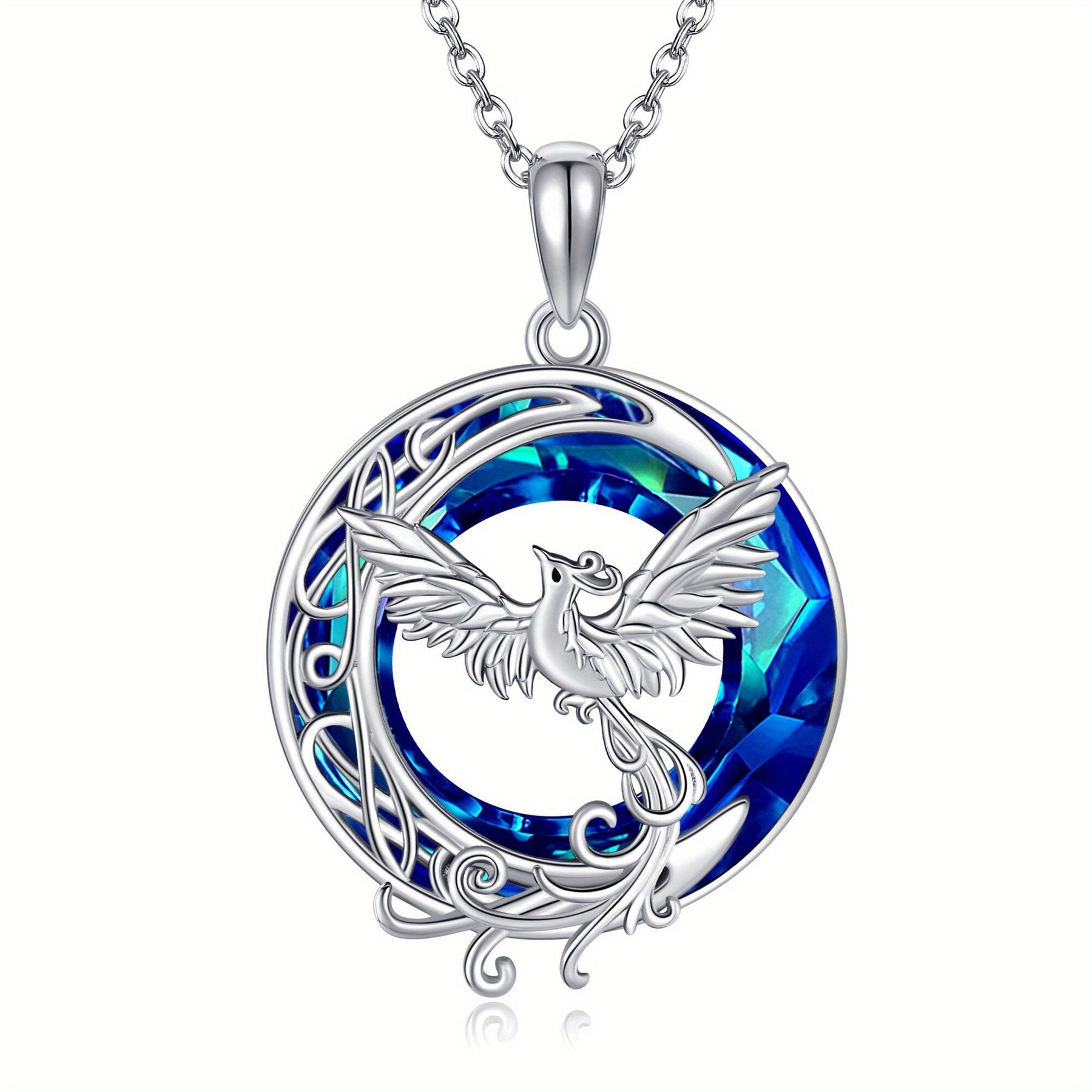 This stunning necklace features a beautiful crystal phoenix and crescent moon design. Made of high-quality 925 sterling silver, it is a perfect jewelry piece for women, girls, and moms.